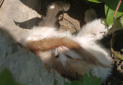 Здравейте,  наминавам да споделя , че Зеленски вече е добре. Тича като луд, няма оплаквания от болки. Единственото различно е , че избръснатото му дупе не се отделя от мен. Явно го е страх да не го зарежа пак в някоя клиника. Вчера една гугутка се удари в стъклото на терасата, докато той дебнеше там. Пощуря да я хване. затворих го в другата стая за да проверя дали птицата е ок. Оставих й вода (вече вървя навсякъде с купите с вода, оставям и пред вратата на тротоара, за котките и кучетата в тази жега). Беше само зашеметена леко, но след 10 мин излетя. Зе изскочи после като тапа от стаята, където беше затворен Satisfied