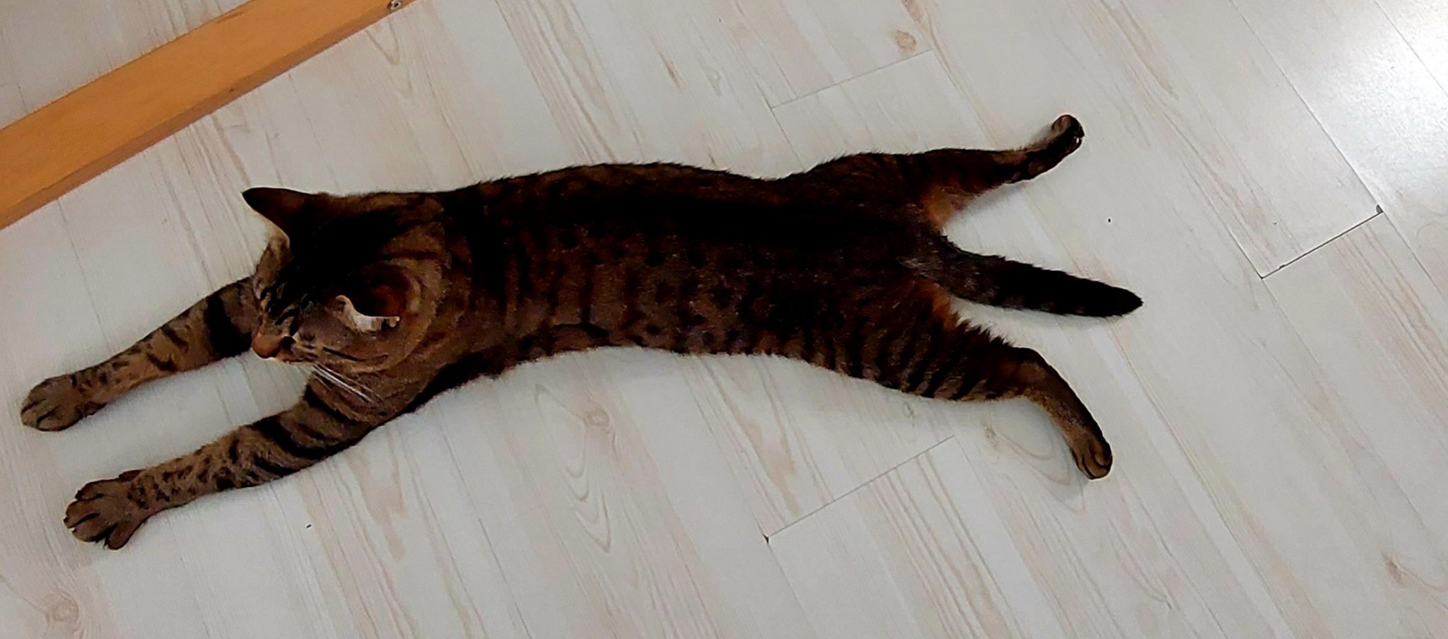 А до  скоро  поне спеше, разбираше, че като стане тъмно и тихо - и той е тих.  До 23ч играеме с въдици, много тича и ловува мишките... уж се изморява...