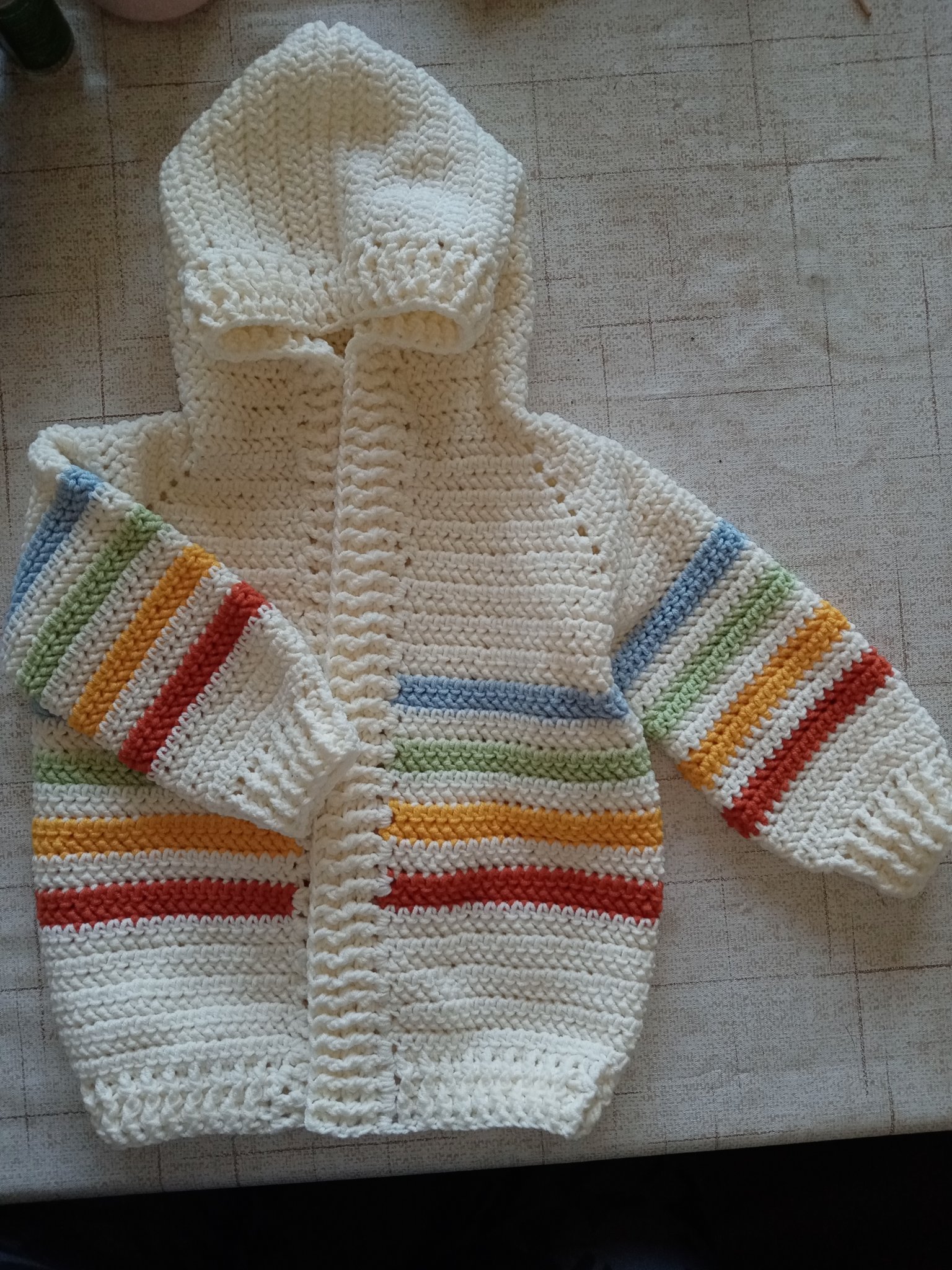 Дето питах за размери за жилетка, остана ми копчетата само да зашия... Ще има и шапка с останалата прежда...