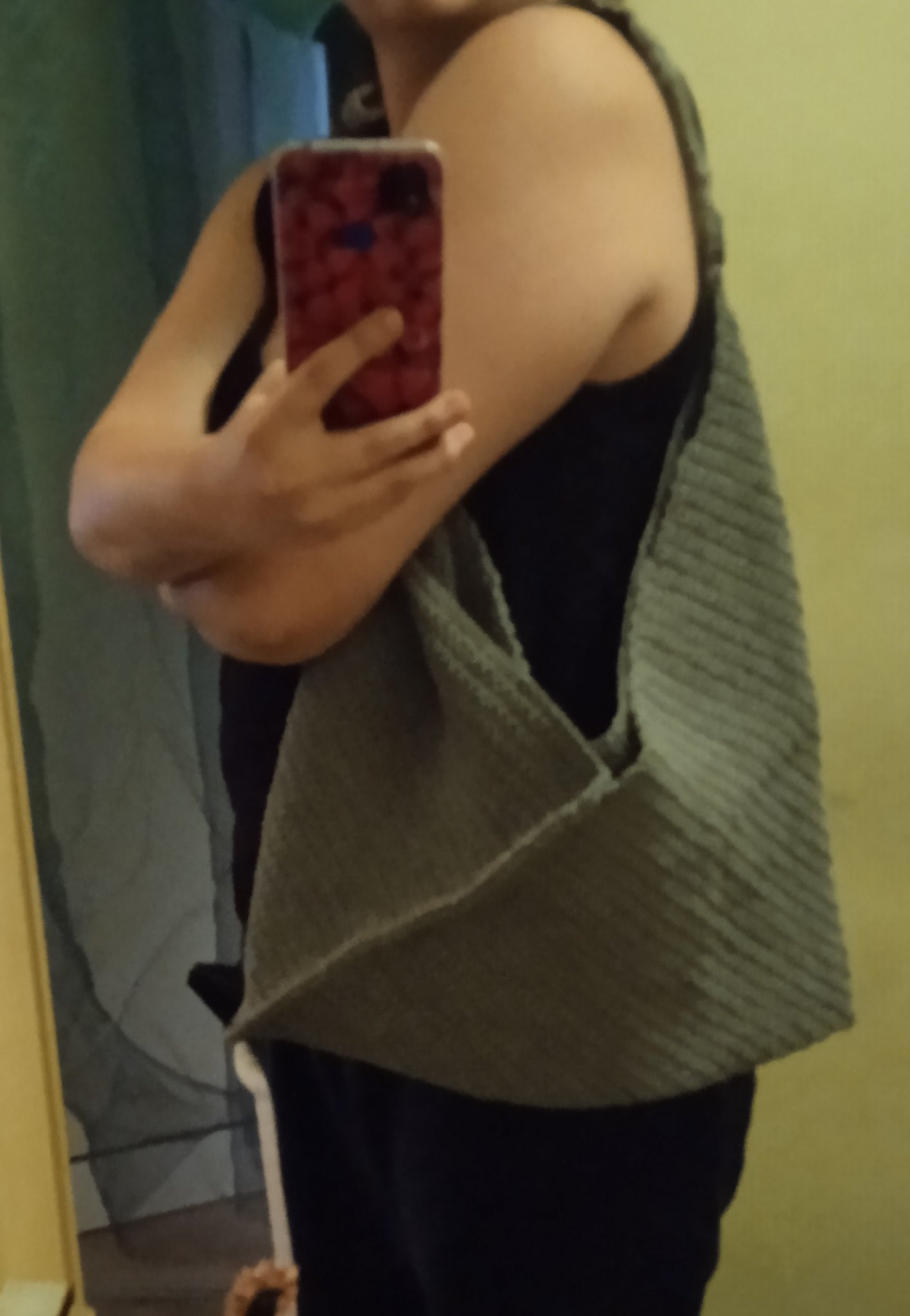Гледам ти чантата и ми се струва малко непрактична с тези големи дупки в средата,  поне на мен би ми била така. Предлагам, ако и на теб не ти харесват да са толкова големи и да се намалява полезния обем на чантата, да ги затвориш малко. Примерно с кръг, правоъгълник или триъгълник, които да пришиеш допълнително. Дори може да са в друг цвят.