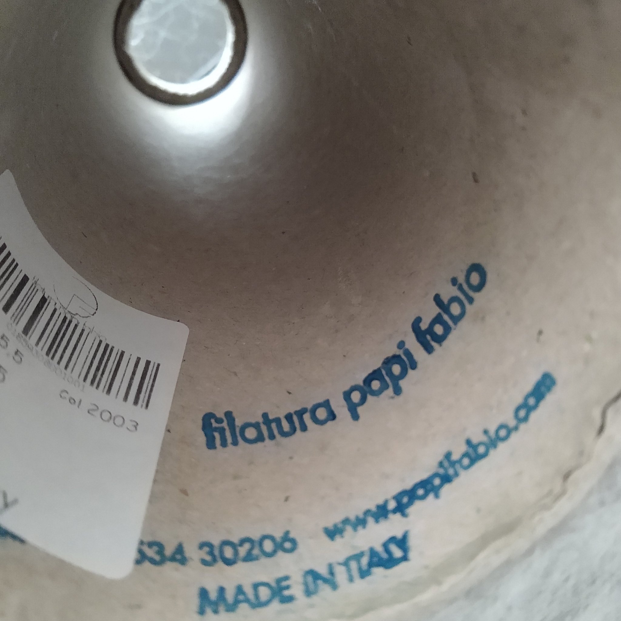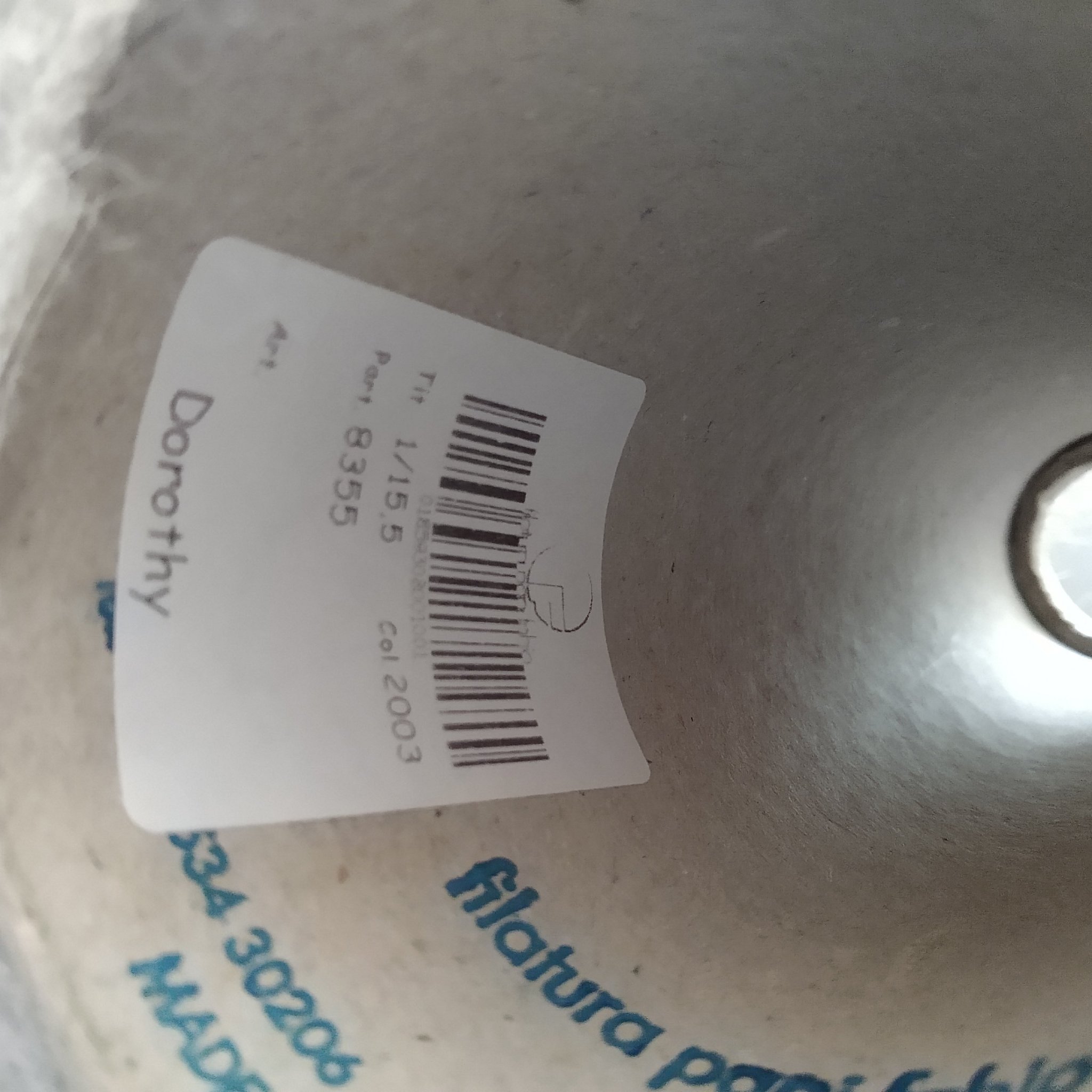 На бобина е Papi Fabio Dorothy, а преждата не тази. Дороти е стар артикъл и е любим на много плетачки. Ако помните слагах светло сиво-син пуловер, точно от тази прежда. Много я обичам. Още има Dorothea, същия състав, само 2/30 и Dorothex 1/2000. Един състав, една фирма, само различен метраж.
