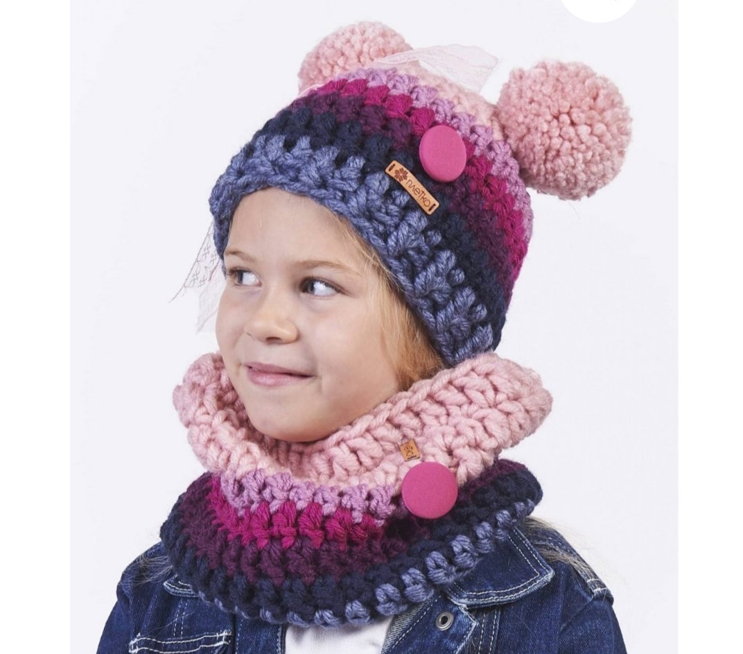 Здравейте,  много ми хареса този детски комплект шапка и снуд. Според мен плетката е една кука висок пълнеж,  или бъркам. Вие как смятате?