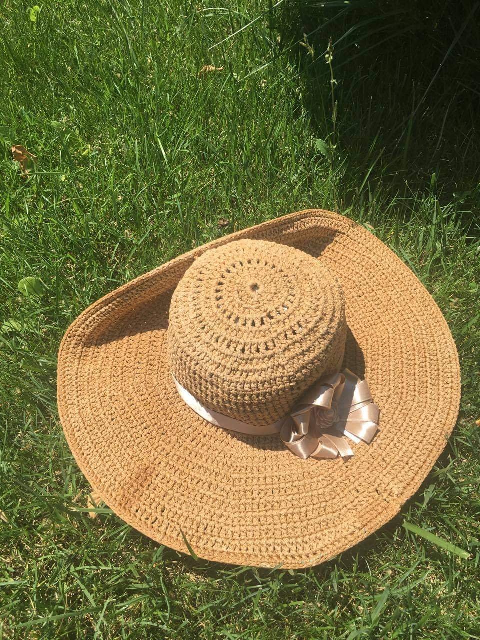Пак да се похваля с плетена лятна шапка от рафия, тип сламена с пандела, друг модел. Завършена тази сутрин и вече пътува по предназначение. Simple Smile На живо, цветовете са много по-хубави и свежи - бледо жълто и зелено, суха трева.