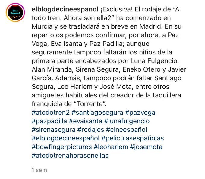 След това изброяват актьорите, които ще участват. Някои все още на са потвърдени. Керем не е споменат. Скоро ще се разбере дали е точно този филм. Например утре. Joy Жанрът е комедия. Има първи филм "A todo tren", ако на някой му е интересно за сюжета.