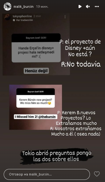 Попитали са известният блогър Токио, дали има вече нови проекти за Ханде и за Керем. Той е отговорил, че проект за Ханде все още не е ясно кога ще има. Относно Керем е отговорил: "Той ни липсва толкова много".