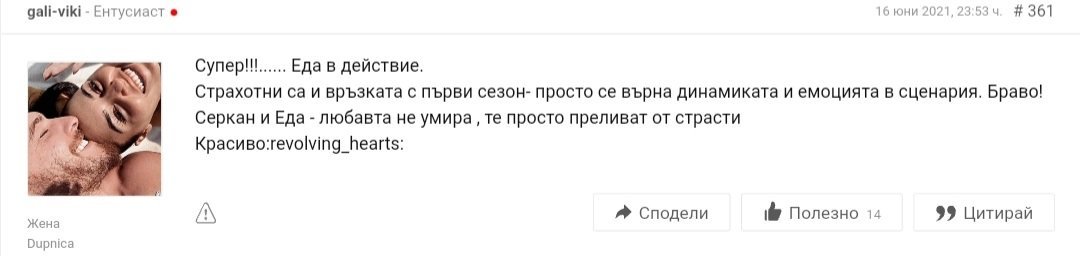 Просто нямаше за кога да започва нова сюжетна линия...Заради новият сезон и повече серии се насладихме на какво ли не ....Само Серкан може да ме накара да пиша от телефона. За друг не бих си го причинила.  И да защитя Еда разбира се 😏
