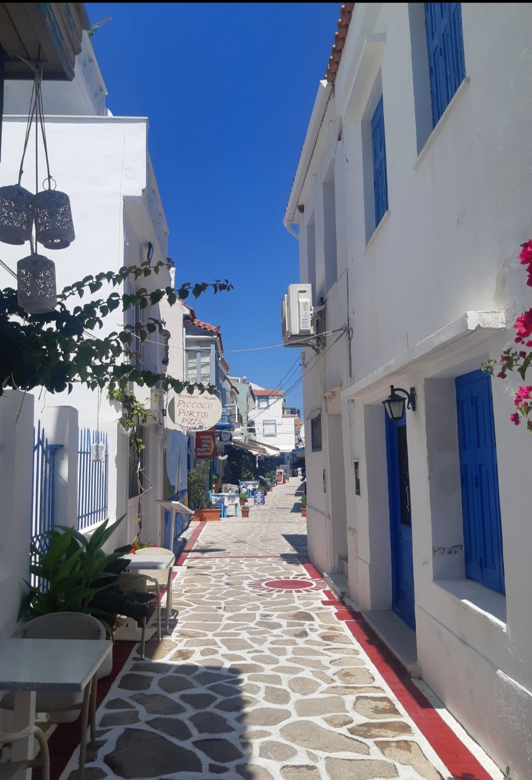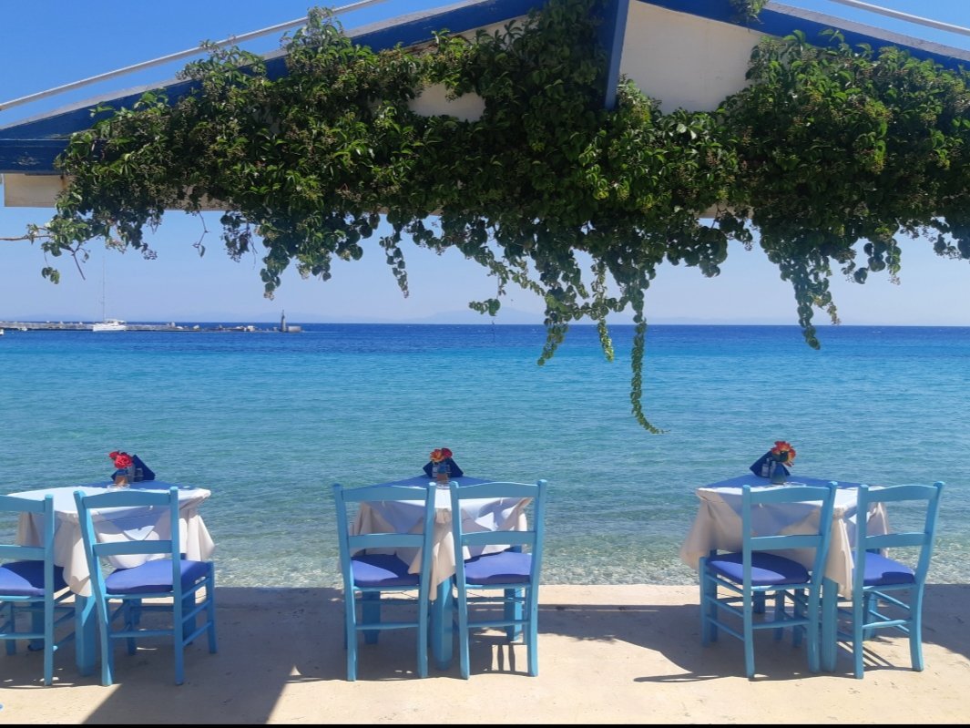 Агиос Георгиус, намерихме пясъчен участък. В камънистите участъци хората отиват до морето с джапанки и ги оставят на брега или с плажните обувки ходят. Днес водата е с една идея по-топла и не ми спираше дъха като вляза, дори направих няколко дължини между шамандурите 😁