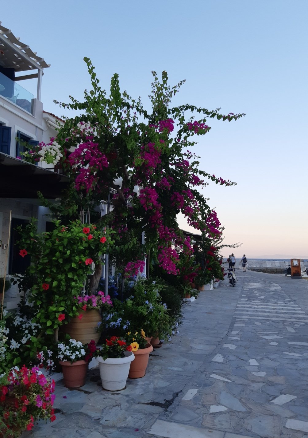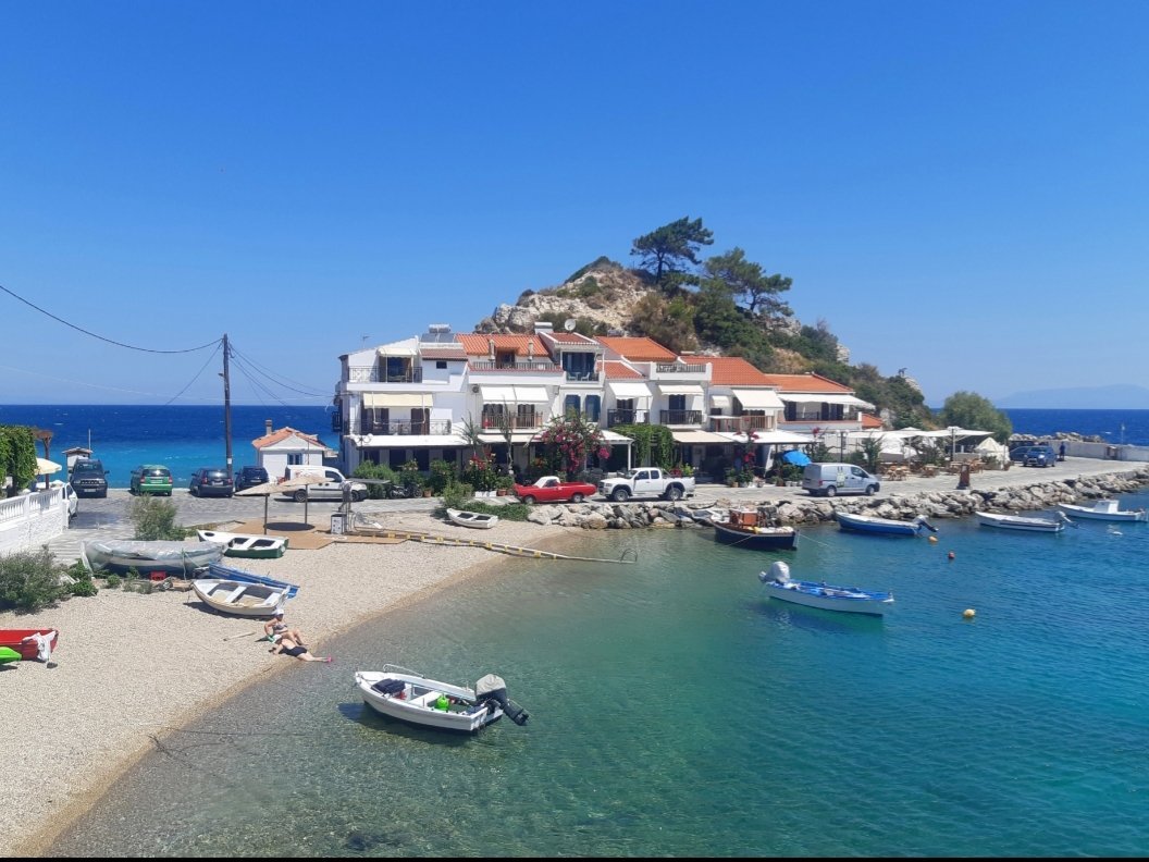 Късния следобед тръгнах от квартирата да ходя до Порто Тимоти плажа. Имах GPX маршрут, взех раница с вода, храна, хавлия, крем за слънце и спрей за комари 😁 Пътят до селището на хълма от плажа е мамата си джас. Първо по едни скали в морето, после една стръмна и тясна козя пътека. Трябват си сериозни туристически обувки и дълги панталони за пътеката. Аз бях с MTB маратонки, твърди и лепещи подметки и пак не знам как стъпих на скалите, така огънах пръстите, че сега куцам 😔 Като видях и пътеката, бих отбой.