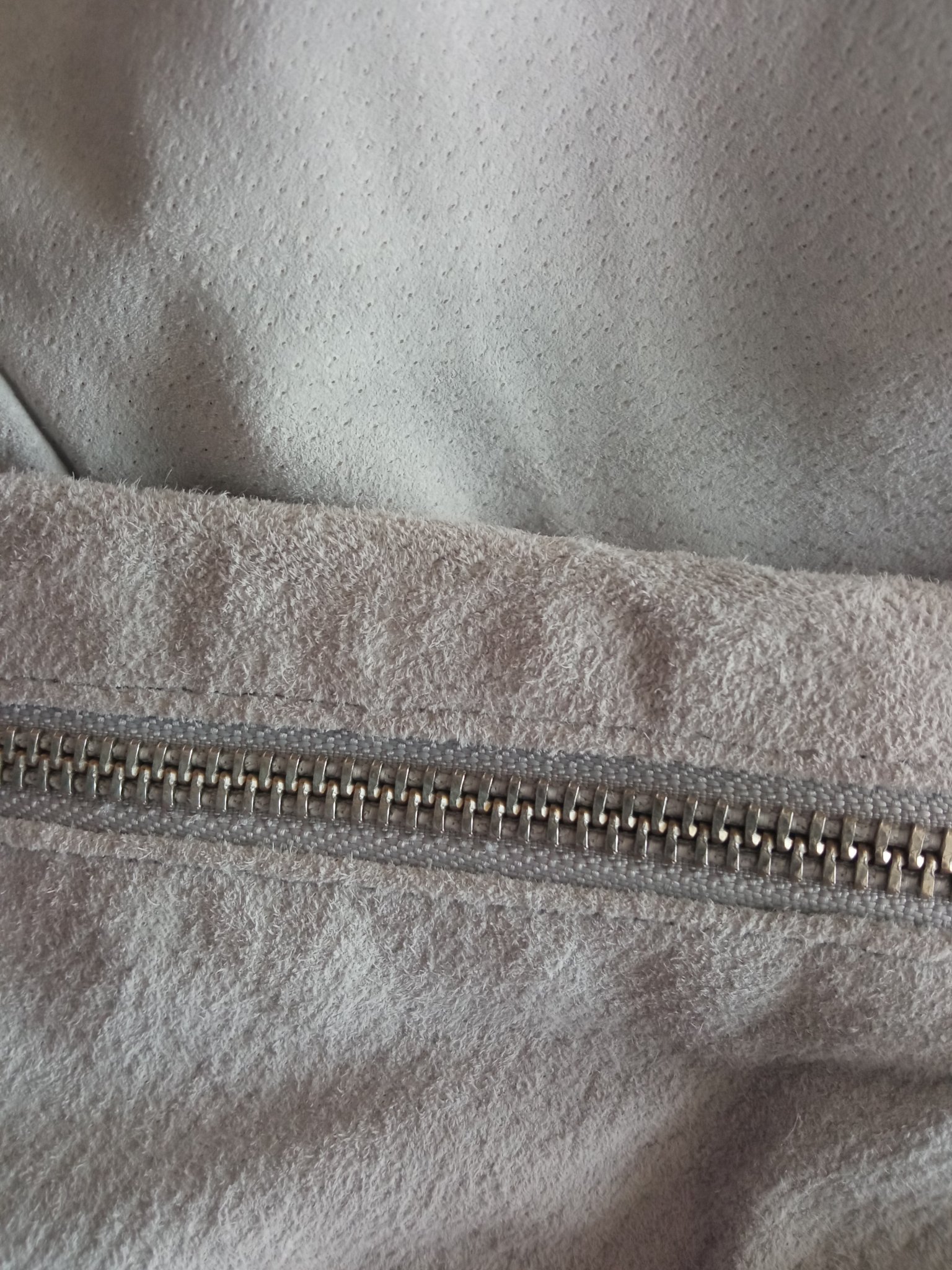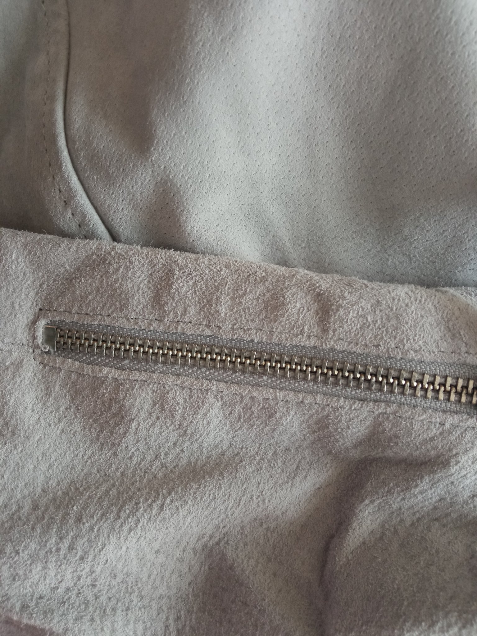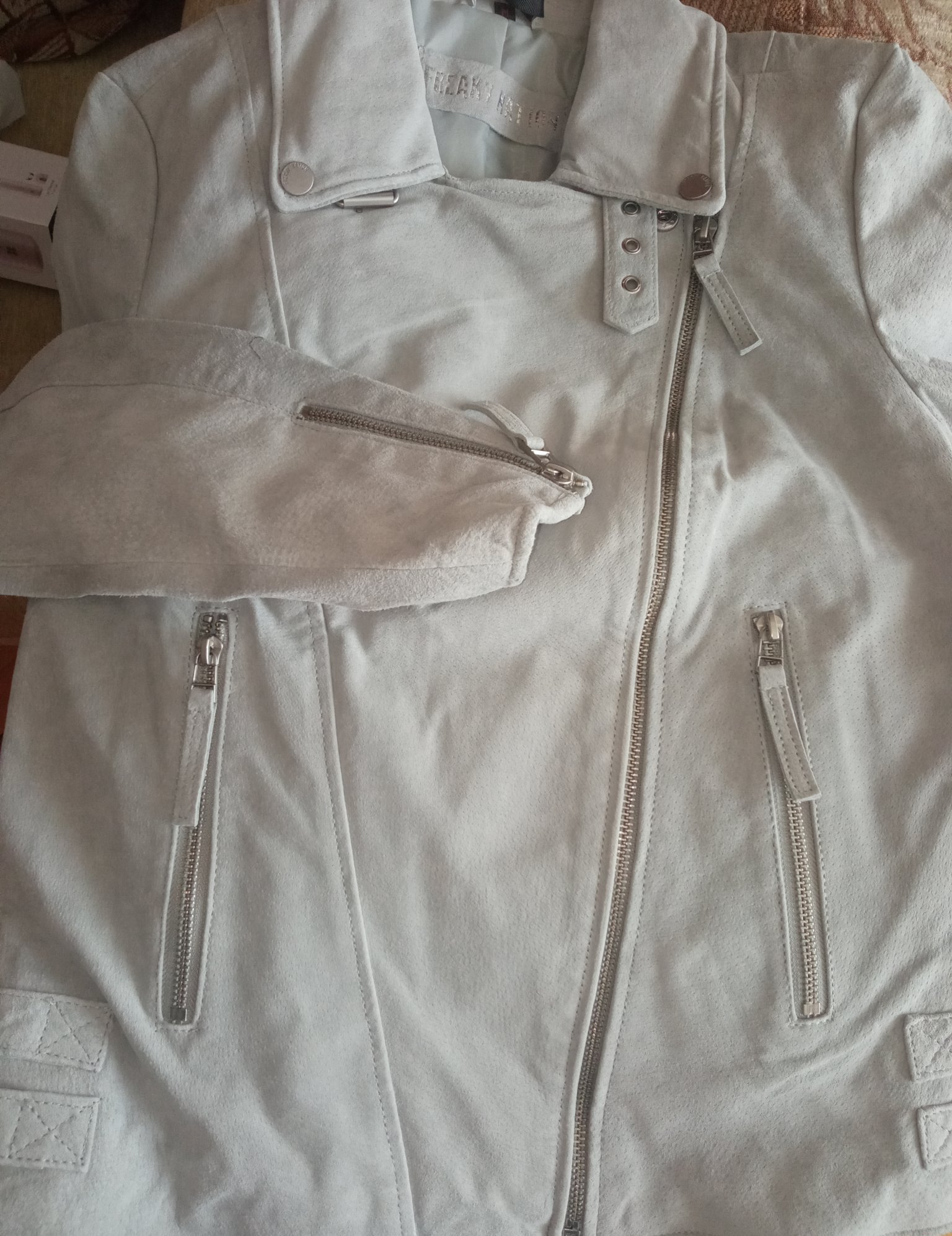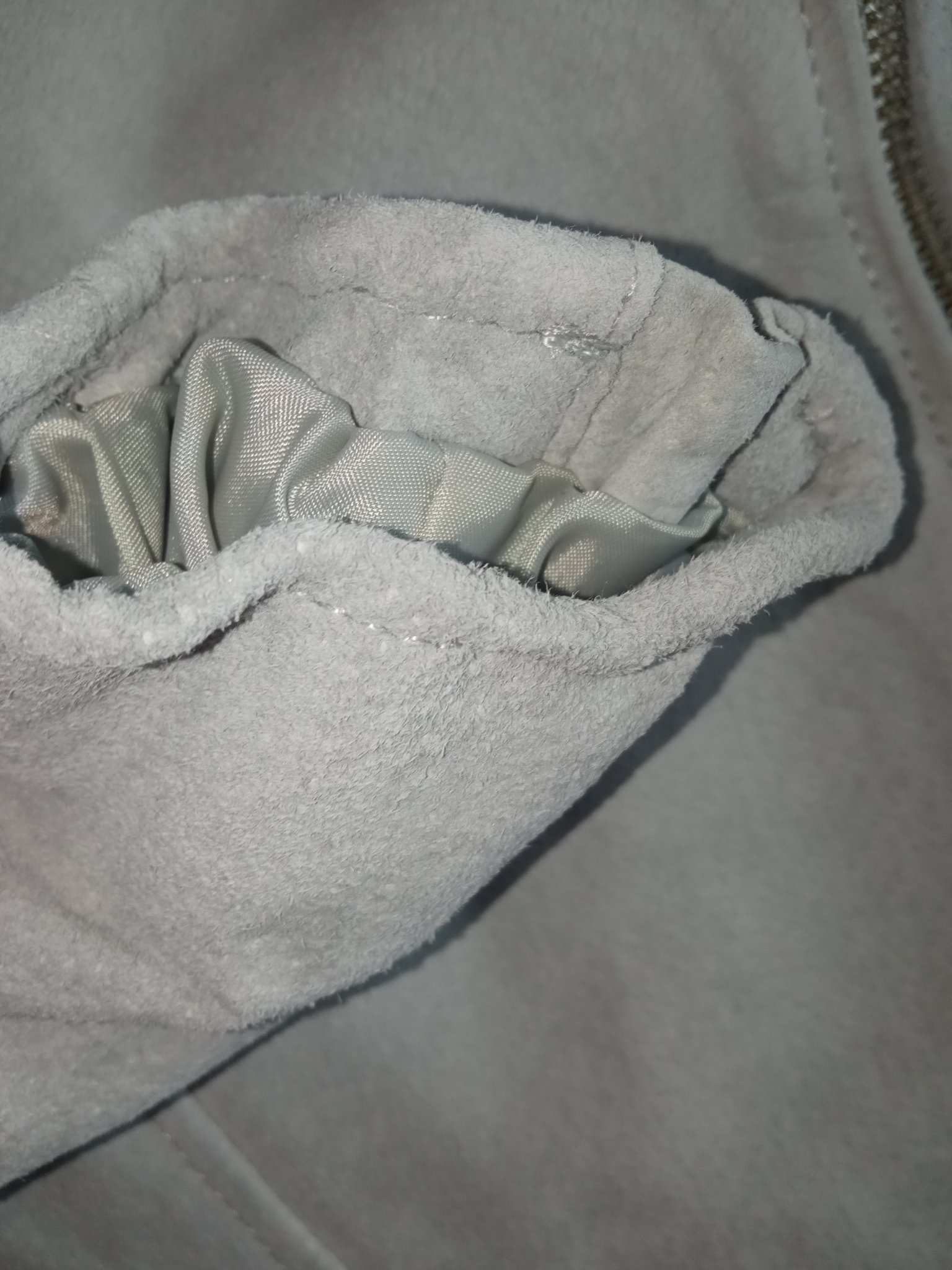 Всъщност, не съм много сигурна че ще го оставим, защото нещо доста нискокачествено ми се вижда. Тънка е кожата, и от сега е прососана 😄, не знам как да го кажа, съшито от отделни парчета с различно качество. Особено на ръкава най-отдолу имам чувството че след пет носения ще се скъса: