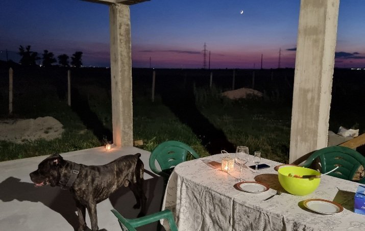 Ето ни аграрната романтика на верандата и едно куче, което се чуди къде се намира и какво става