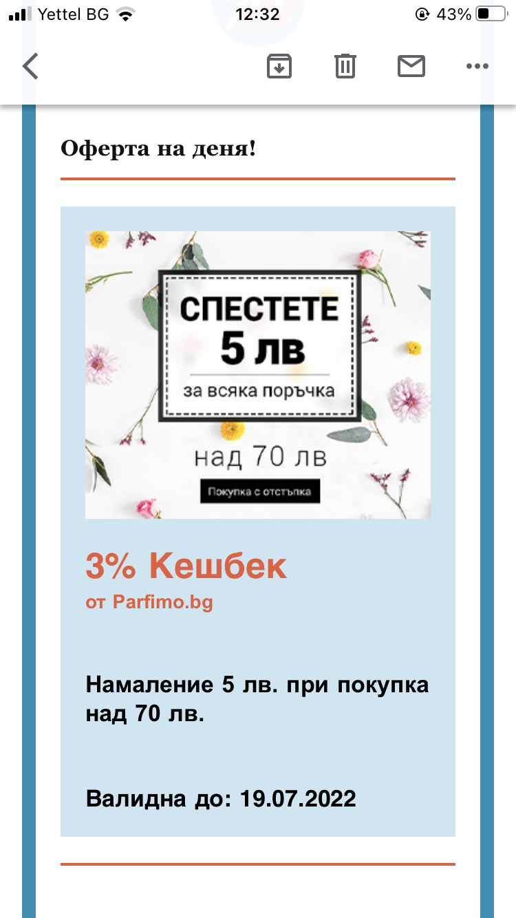 до - 40% от 13.07.2022 до 20.07.2022 или до изчерване на количествата.