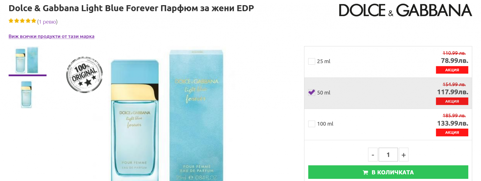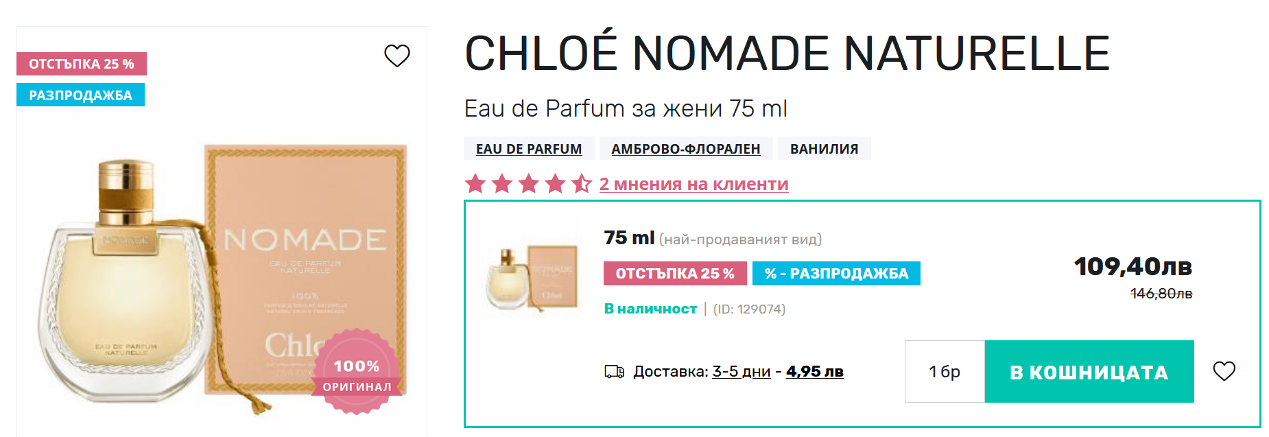 Тук цената за 75 мл с код е добра, в Старкорп 62 лв е била за 25 мл