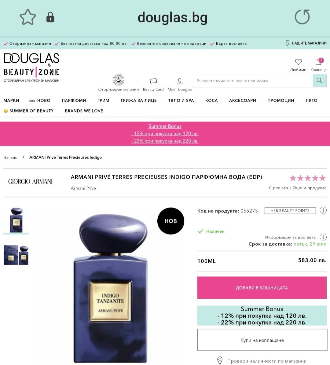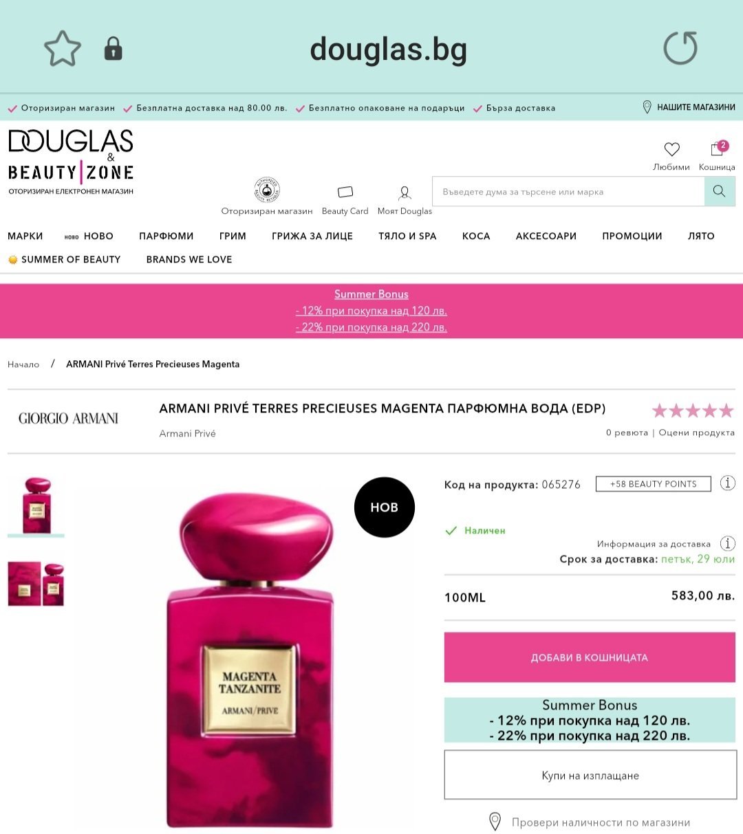 В дъглас код късмет сваля още 7% от цената.Поръчах Magenta tanzanite  и цената стана 422.9лв.
