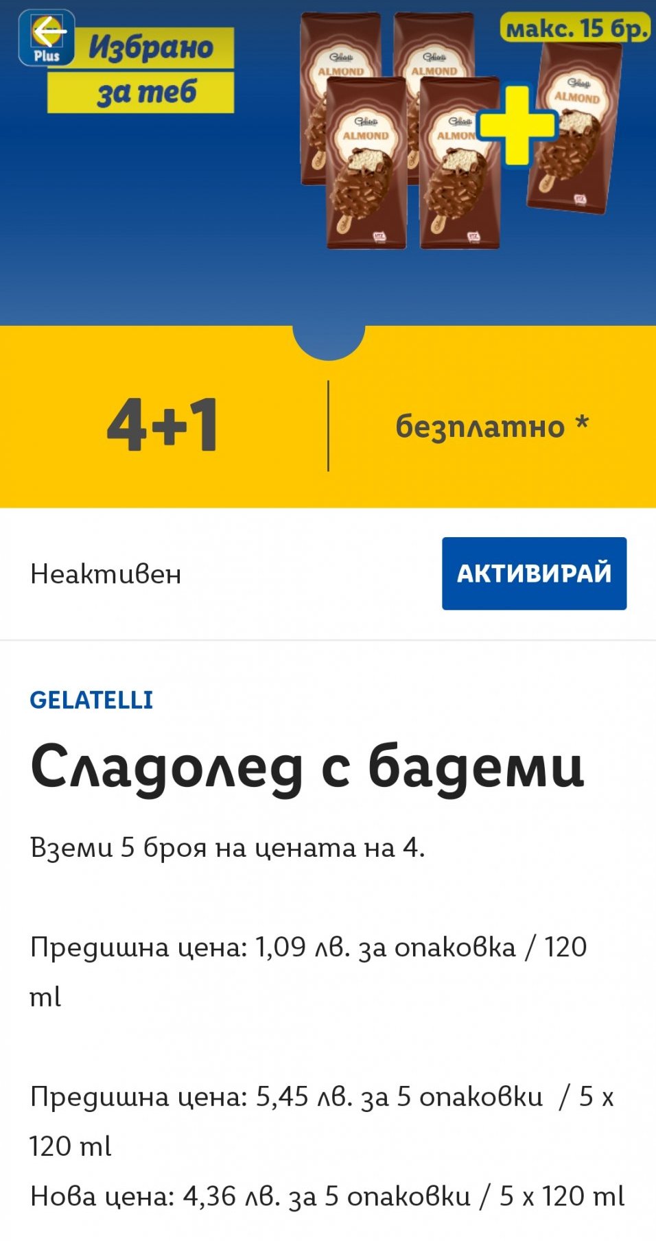 Подарявам купон за сладолед - "Избрано за теб", както и всички седмични купони.