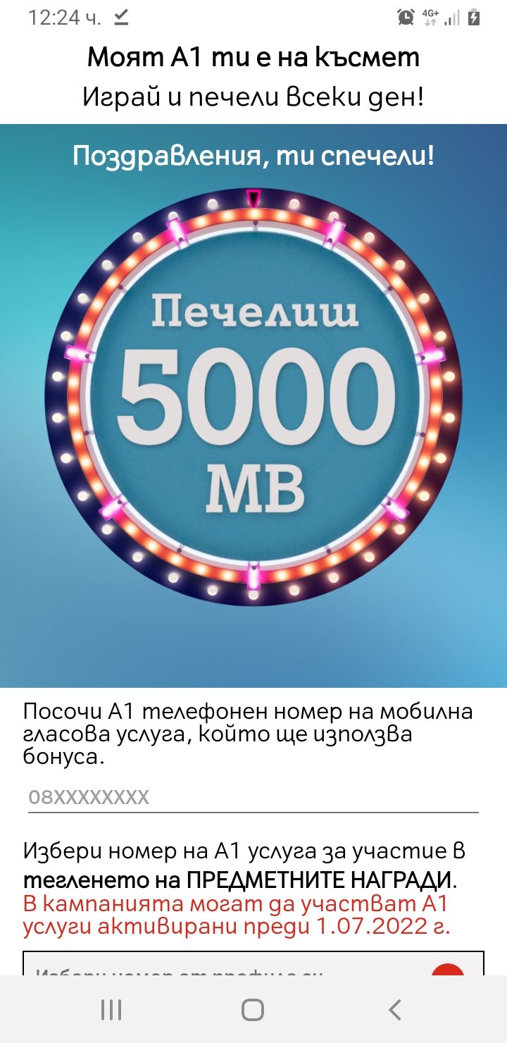 В Моят А1 има колело на късмета. Спечелих 10 минути.
