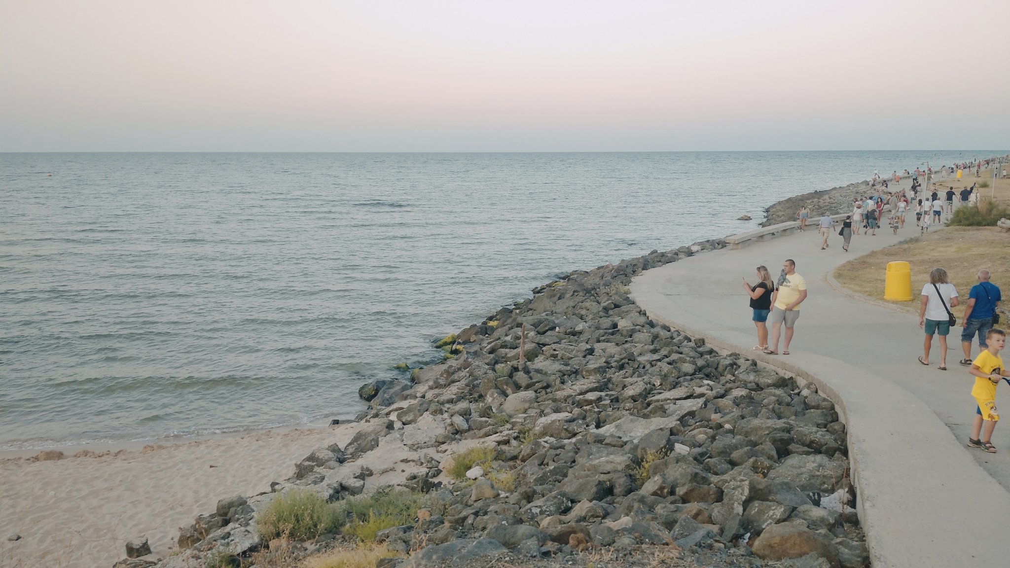 Разхождам се. Много е приятно по крайбрежната. Чакам да зърна делфини.