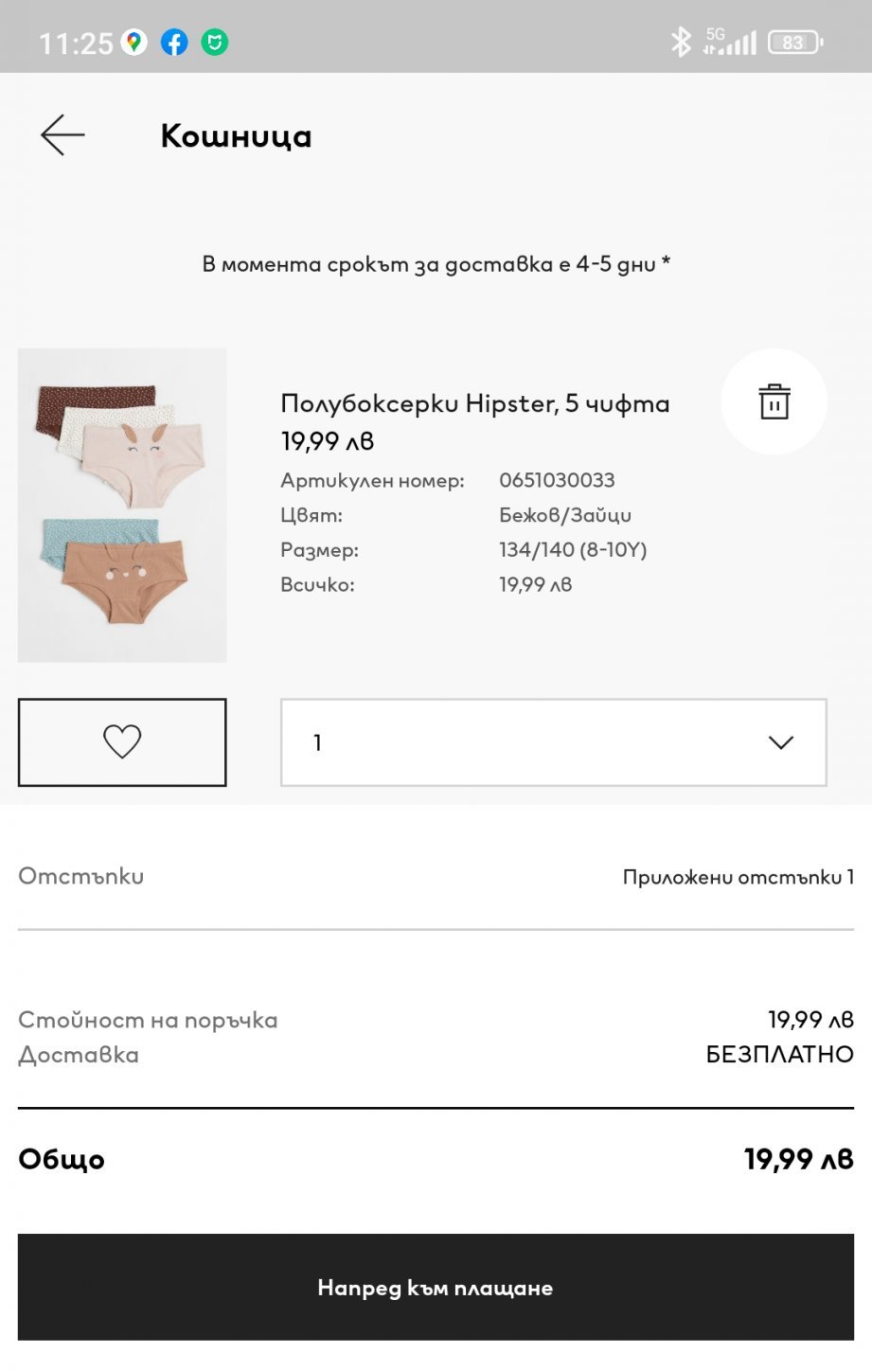 Похвалвам НМ за бързината на връщане на пари. Буквално за 2 дни ми върнаха парите от върната поръчка. За разлика от Абаутю, Рисървд и Мохито, където отиват минимум 2-3 седмици и редовно е с разправии....
