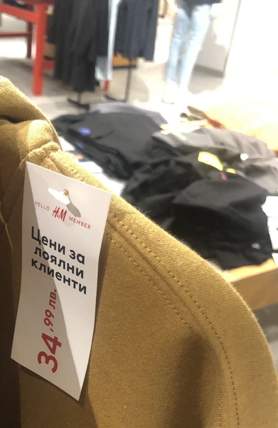 Етикетирането във физически магазин. Може би е ново, защото преди дрехите с “цени за лоялни клиенти” бяха наредени на една закачалка с банер над нея. Сега всяка дреха си има закачен собствен етикет.