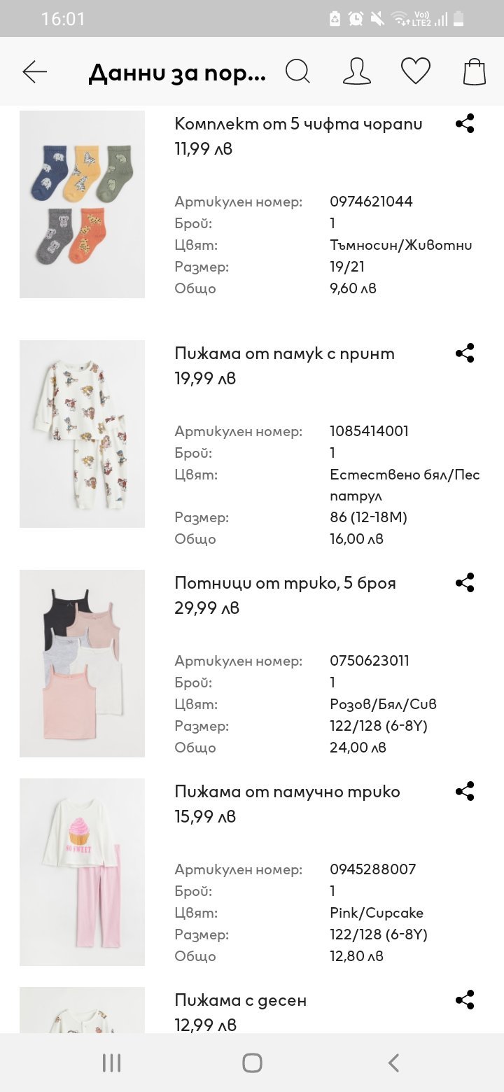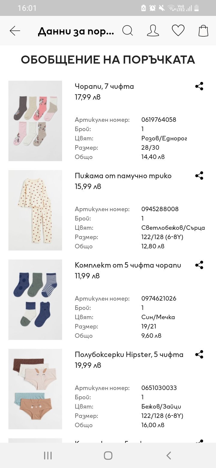 След като започнат да опаковат поръчката ви, ще получите имейл с информация за доставката и връзка за онлайн проследяване на поръчката. Можете също така да проследите Вашите поръчки в раздела „Покупки“ на уебсайта на H&M. Това ви позволява да бъдете информирани за местоположението на вашата поръчка по всяко време.