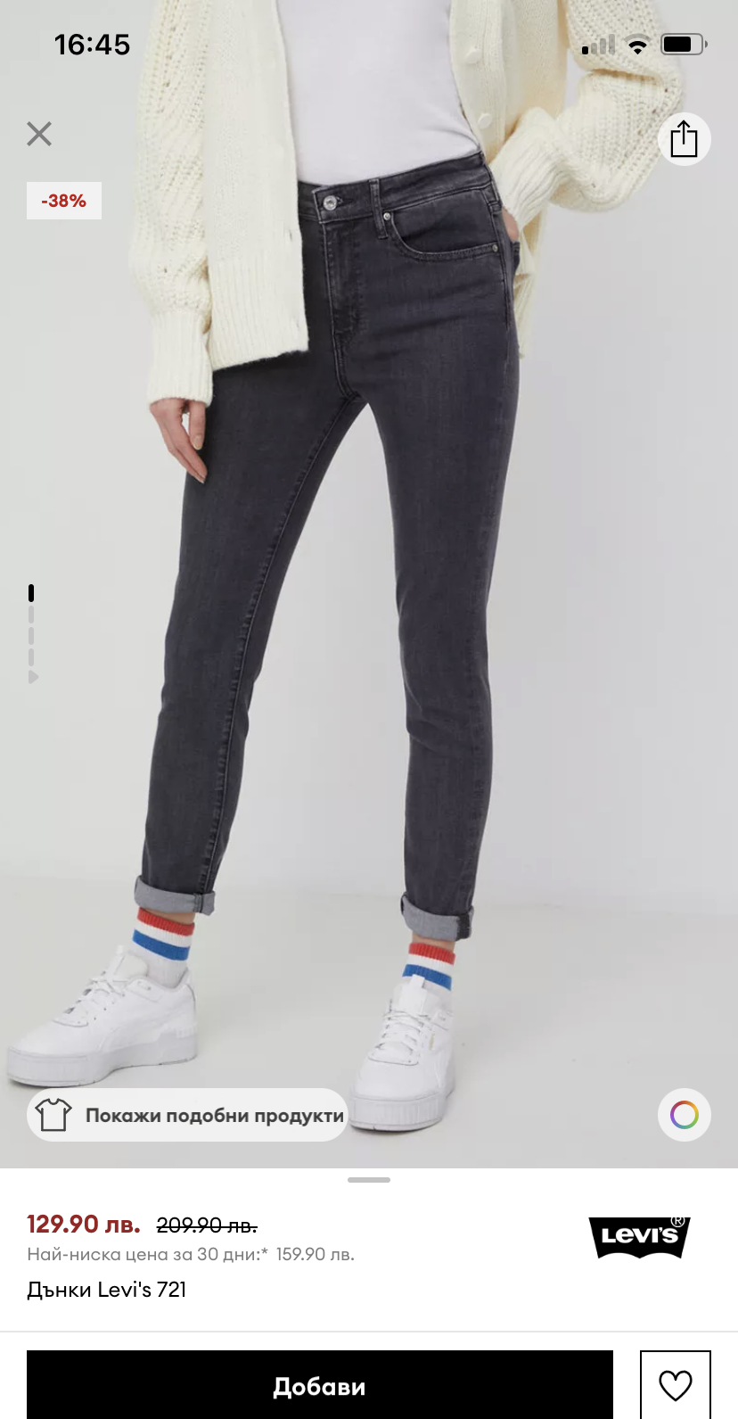 За дънките Левис съм писала преди, също с бримка, размер 28. Не пазя снимката.