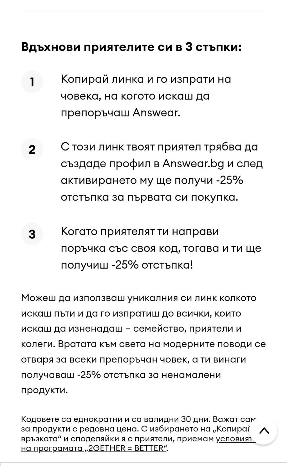 Здравейте, а някой пробвал ли е новата опция 2gether=better? https://answear.bg/moyat-profil/vhod?token=dd11f8e4a30f4b168b7b0 … 4c94a93390b7e052d