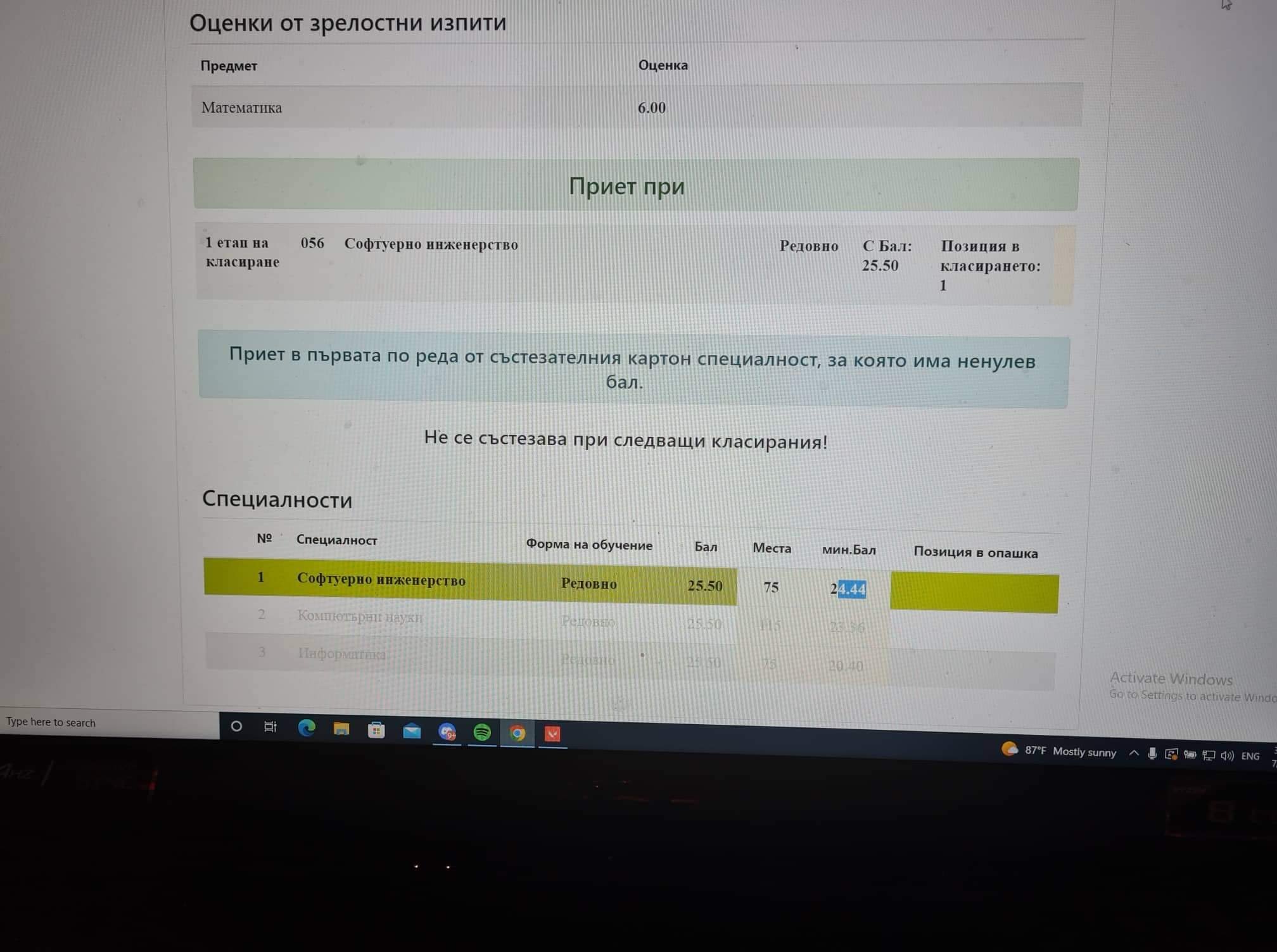 Какви са минималните балове за различните специалности в СУ за момчета?