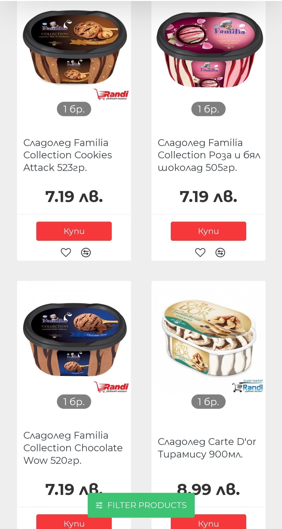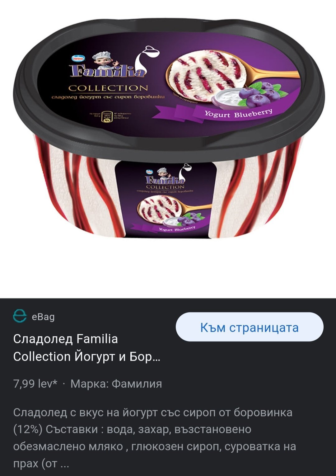 На Фамилия от колекцията харесвам шоколадовия с бисквитките. Бяхме се натръшкали (болни) преди години вкъщи и ни трябваше сладолед. Купиха ни този, нищо общо нямаше на вкус със стандартните Фамилия. Други не съм опитвала, защото тогавашната му цена от минимум 6,50 лв за кутия ме впечатли доста...Помогна ни тогава при боледуването де😁