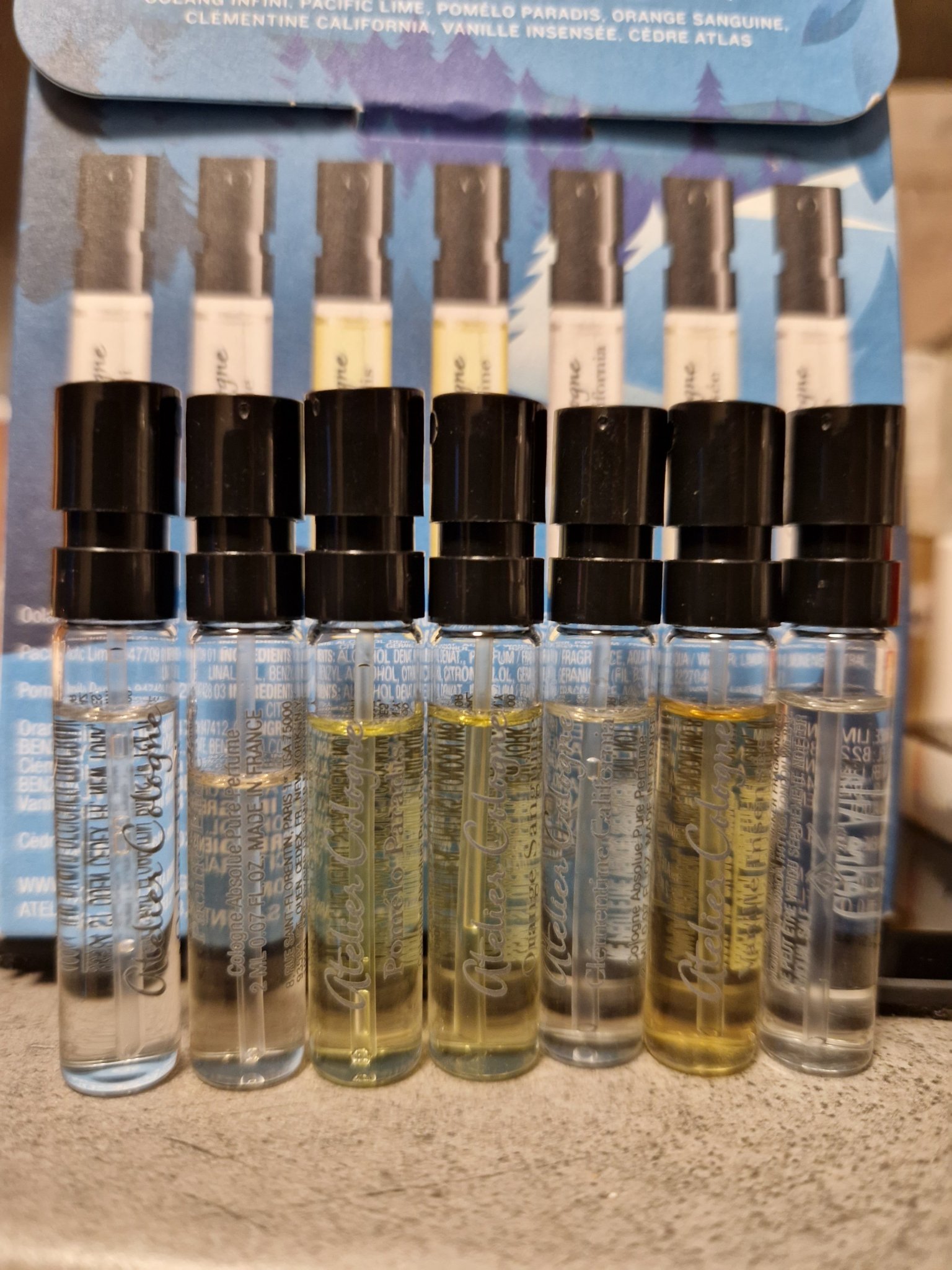 6   Atelier Cologne Paris Parfume Treasures, Discovery Set (Oolang infini, Pacific Lime, Pomelo Paradis, Orange Sunguine, Clementine California, Vanille Insensee, Cedre Atlas)   https://www.fragrantica.com/designers/Atelier-Cologne.html   7x2ml