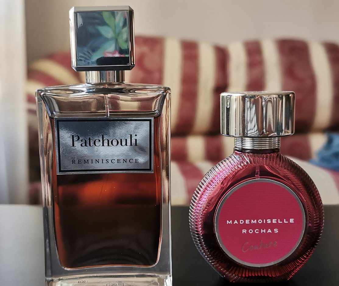 Разменям Reminiscence Patchouli и Mademoiselle Rochas Couture. На снимките се вижда какво количество са.  Не пазя кутиите, изхвърлям ги още при разопаковането Simple Smile. Не търся нещо конкретно.