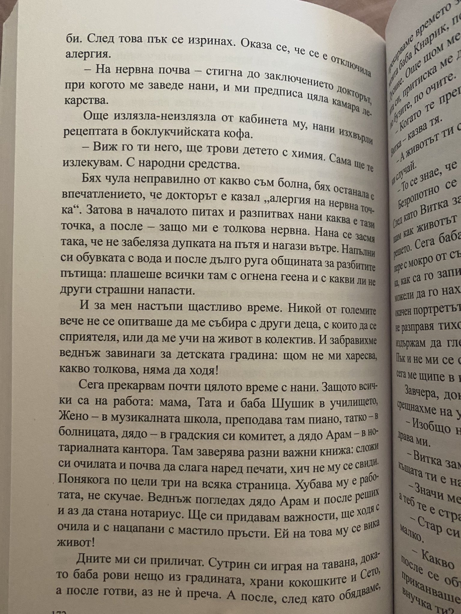 Приключих с "Ще видиш ти като родиш". Харесвам много Неда Малчева, но според мен силата и е в илюстрациите. Книгата не е нищо особено. Не знам дали причината да не ми хареса е, защото вече имам деца. 😃 Общо взето има само общи приказки и заключения, които според мен знаят и тези, които нямат деца. 😀 Оценка- 2/5.