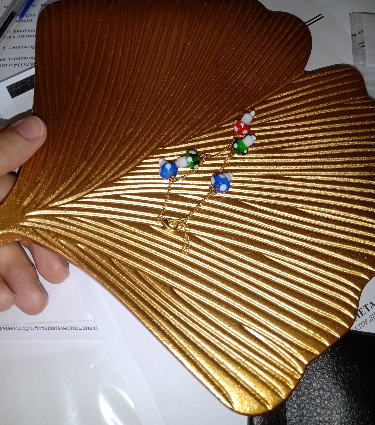 Купата с форма на листо на гинко е по-голяма, отколкото очаквах. Бях я предвидила за нещо, което няма да стане. И е от странен материал, подобен на пластмаса.