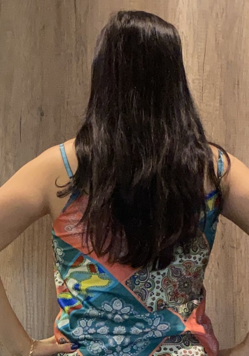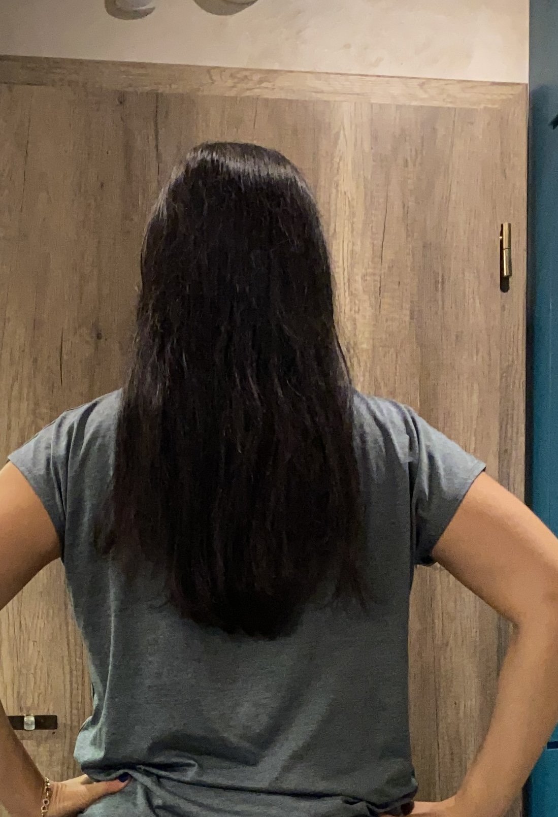 Сега правих: бял шампоан Керастез, 5-6 мин маска измиване Олиеста и неимиващ оранжев Керастез. На първата снимка(дневна светлина) е мита коса мисля само шампоан, втората е с тези неща. Може би е до проби кое как понася, но не искам да прекаля. Не ползвам преса, бърз сешоар с четка…
