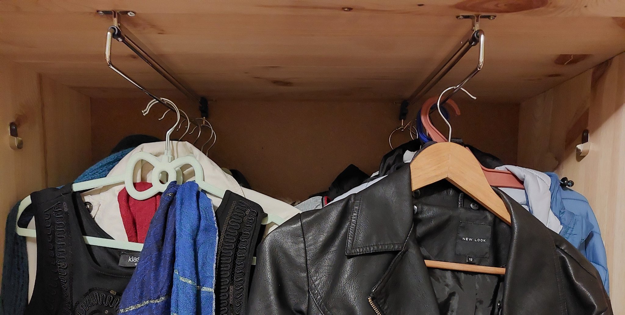 Мисля че ще събереш повече дрехи не като на снимката една зад друга, а със стандартния надлъжен лост, но закачалките да са завъртяни леко диагонално, не перпендикулярно.