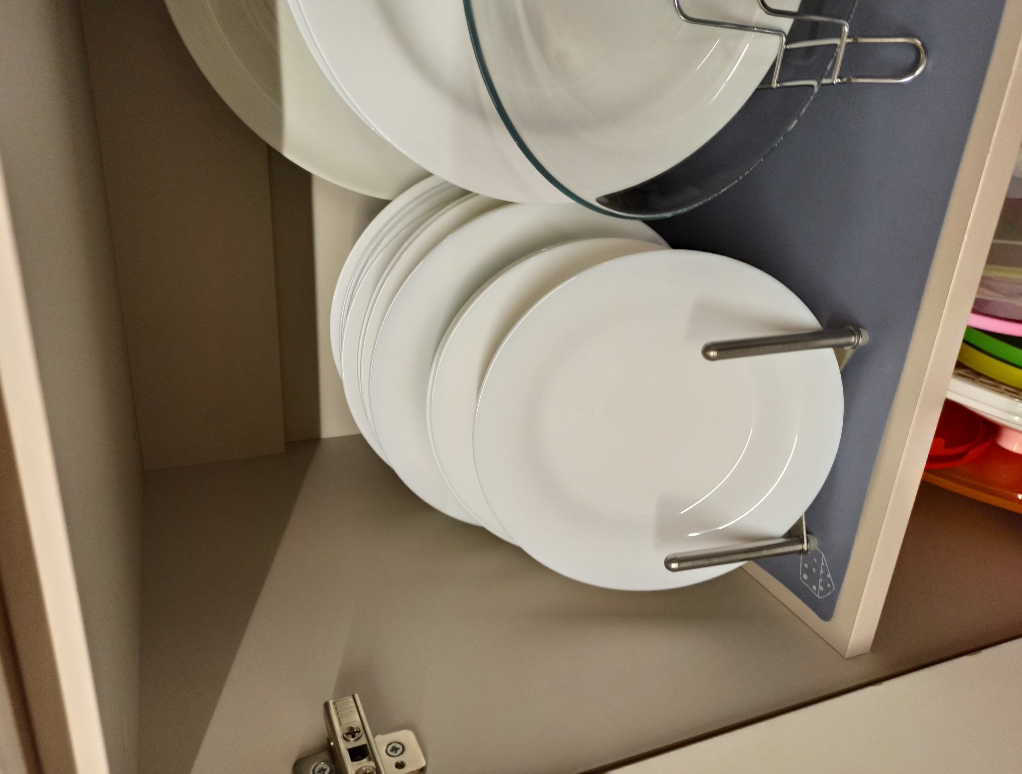 Беше ми удобно и ми харесваше, че нямам по плота сушилник. Шкафът беше с вратички, просто без плоскост отдолу. Не съм изливала вода от тавичката, тя беше малко и се изпаряваше. Свалях я веднъж в месеца, за да я измия. Не съм си държала там всички прибори. Като изсъхнат, ги прибирам по местата им. Живеех сама там. Братовчедка ми е с такъв сушилник, те са трима, двама възрастни и дете на 4. Не знам дали се ползва много, защото имат съдомиялна