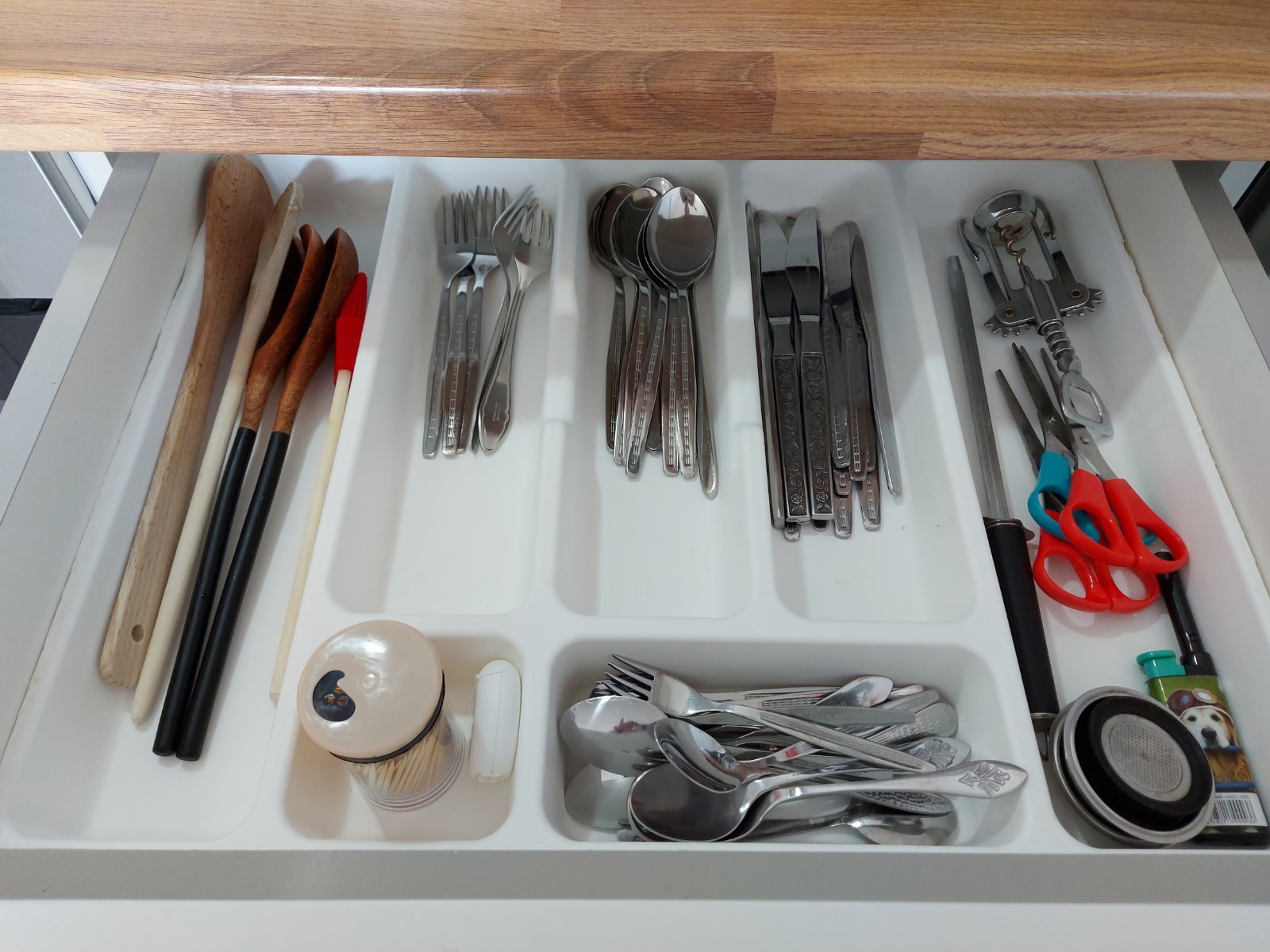 Нашето чекмедже е 80 см широко и този органайзер влиза точно. Даже мисля, че бях чела, че е за блум чекмеджета. На пръв поглед изглежда скъп, но е по-евтин от оригиналните на блум, а е висококачествен материал и изработка. Има за различна ширина чекмеджета.