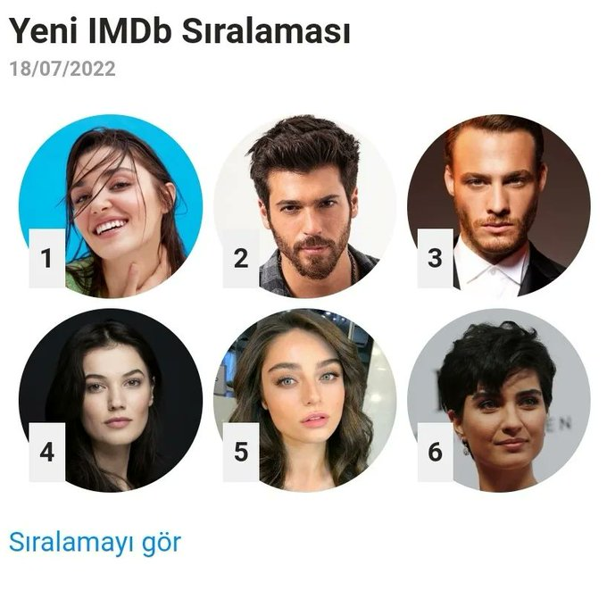 Всички турски актьори и актриси в седмицата на класацията на IMDB, започваща на 18/07/2022. Ханде и Керем са на челни позиции. Да им пожелаем успех.
