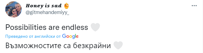 Този език поне го знам, преведох ви интервюто дословно. Обаче подминахме, защото винаги подминаваме новините за новите любови на Керем , но никога не подминаваме тези за Ханде. Защото не знам по какъв параграф Ханде излезе най-лошият човек на света, че е изтрила снимките си с Керем. Очевидно е имала причина да го направи. Сега каква е тази причина е безсмислено да се гадае. А и няма значение за мен.