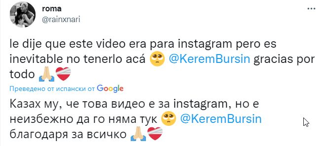 Глупавият ми фенски мозък прави асоциация с други подобни стихове и хора, които вече не само, че не са заедно, ами може би никога няма да бъдат. Разглеждани в една картина видеото със съобщение за лайв и това стори, могат много теории да се съставят. Няма да предполагам нищо за мое собствено спокойствие, само ще се надявам за най-доброто между Ханде и Керем.