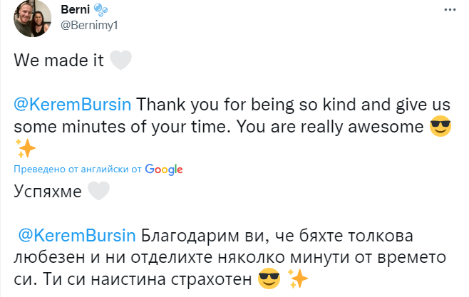 Серкан: Както казах, щом не ти се говори дълго, може да го обобщиш с една дума.