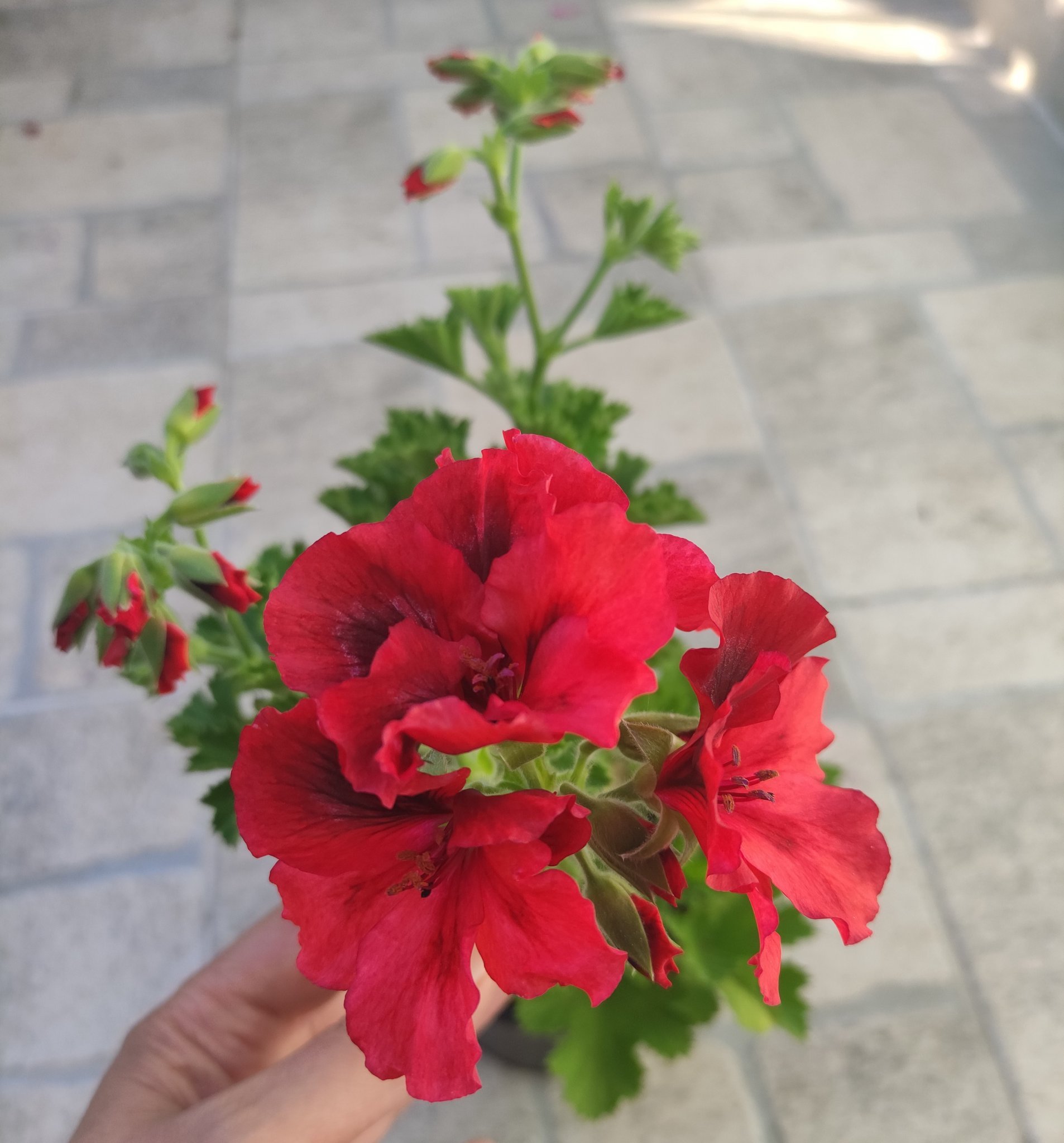 Това кралско мушкато е захванато от мен, от клонче. Днес цъфна. Много му се радвам, че със захващането никак не ме бива. Това, което казвате "чупя и боцкам" хич не ми се получава. От 15 опита имам само 2 успешни