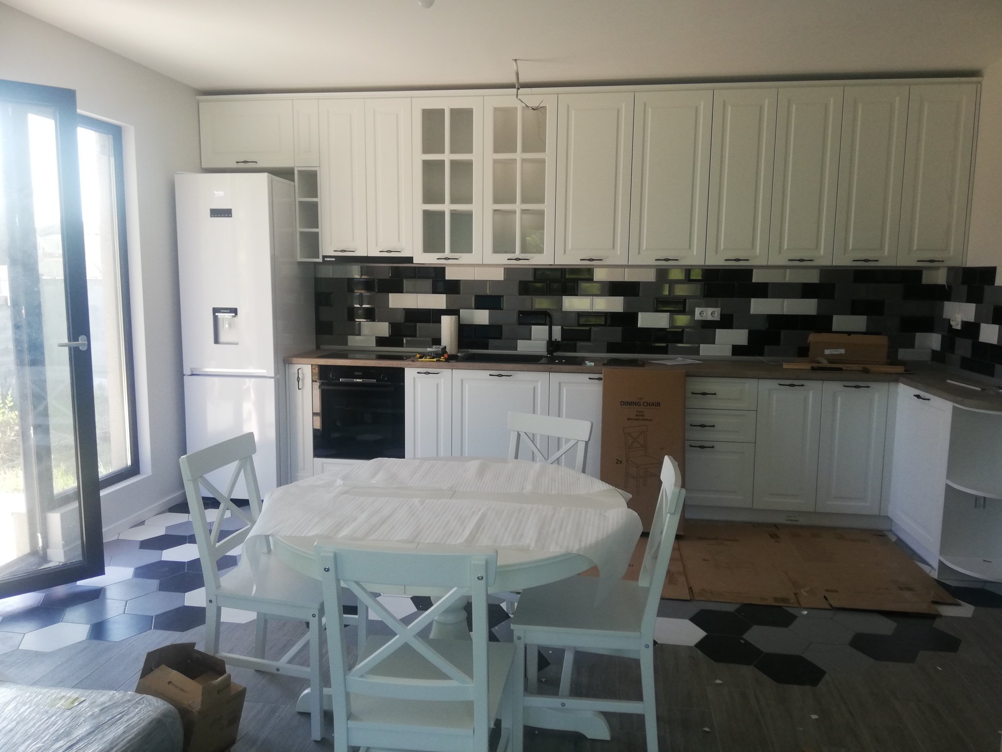 Благодаря! Аз кухня не посмях да поръчам от Икеа, че с тая схема "това го няма, онова го няма" моя приятелка отиде година докато я сглоби. Сега, обаче като ни правиха проект за гардеробното (Варна), жената ми каза, че с кухните вече ставало много по-лесно. Но пък за врати на гардероби ще си чакаме неизвестно колко. Нашата кухня в крайна сметка я взехме от Никора, за 5.20м права кухня с малка чупка излезе около 10хил с мивка и смесител и ни дадоха 500лв ваучер за бъдеща покупка, с който си взехме секция за хола. За 45 дни кухнята беше монтирана, но (едно голямо НО) бяхме поръчали и платили вградено осветление. Дойдоха, монтираха и ще си ходят вече и мъжът ми пита къде е осветлението. Ми забравили го били. И трябвало да се свалят пак всички шкафчета, което ние отказахме, защото стената отгоре си е гипсокартон и не искаме сто пъти да се пробива (вече беше рязана заради объркани изводи за Вик и контакти) и в крайна сметка платихме за вградено осветление, а получихме една светеща лайсна отвън. Сега.. сигурно просто такъв ни бил късметът, но като цяло като изключим тоя проблем, съм доволна и който е от Варна може и там да хвърли едно око, проектът е безплатен. Качвам снимка (масата е от Икеа)