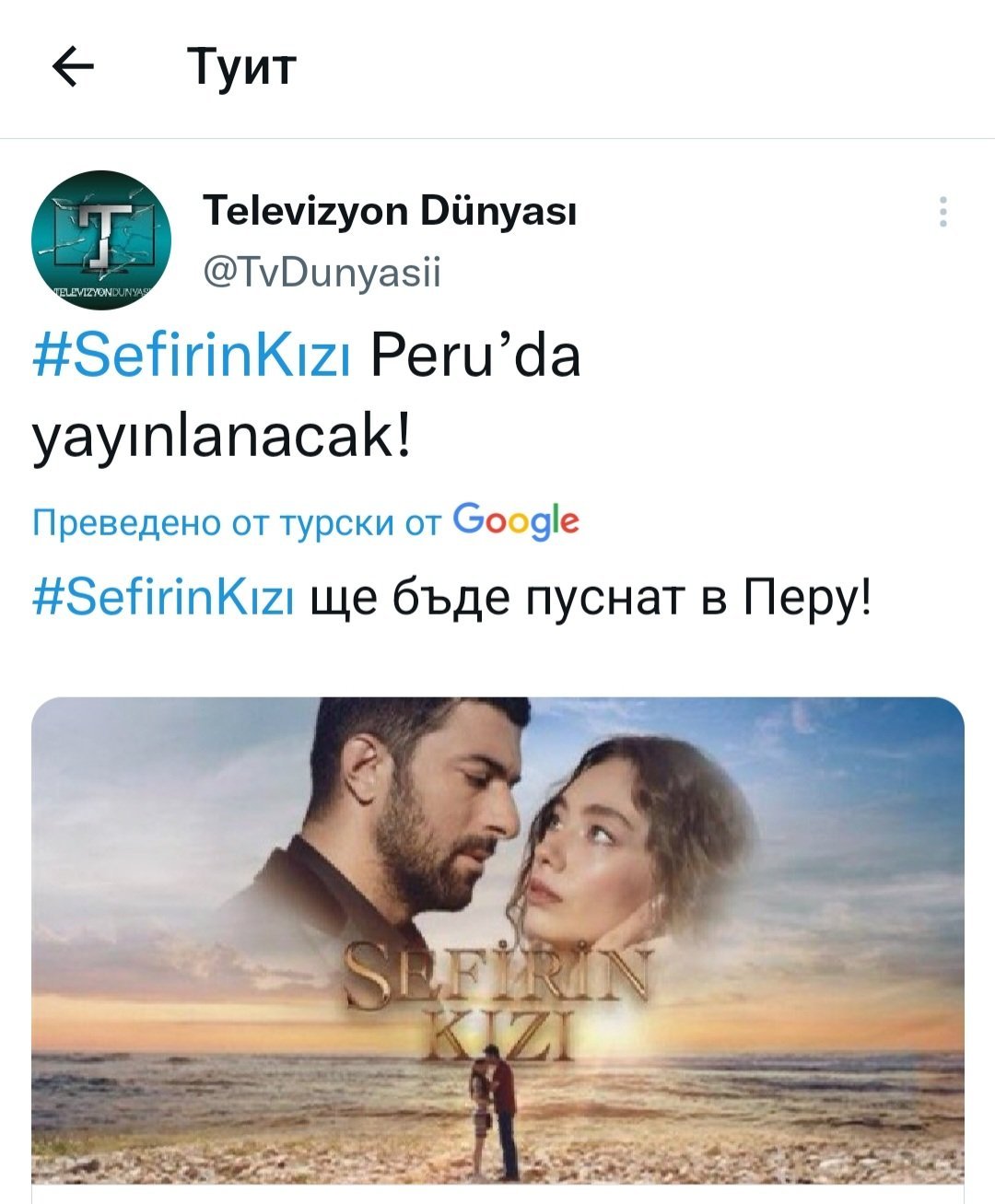 "Мръсни пари и любов" вече е излъчван в Перу: https://twitter.com/Marian_NBvi/status/1567798958914772994