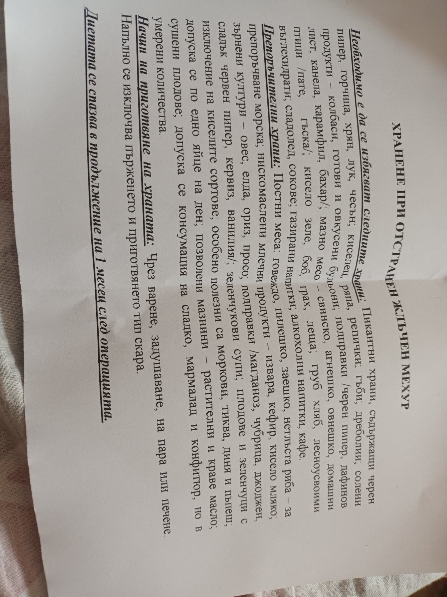 Какви са препоръките за хранене преди и след операция на жлъчния мехур?
