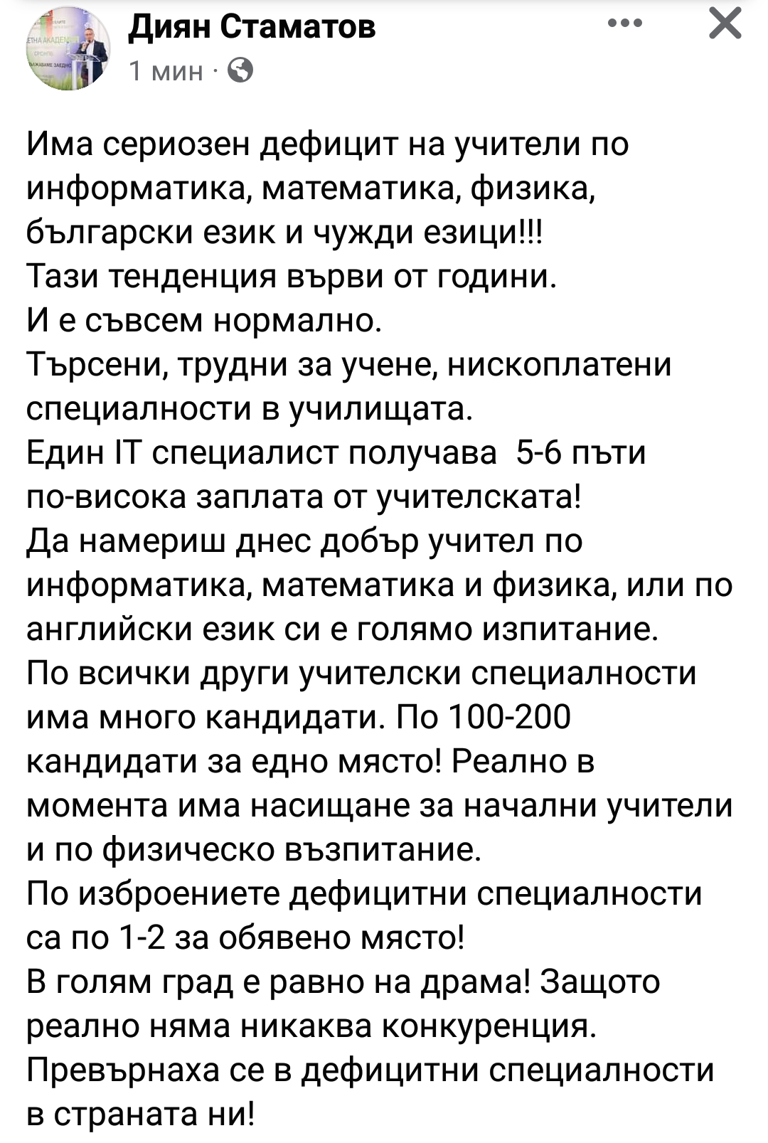 Не коментирам това за кого е изгодно и за кого не е. Също не смятам, че има смисъл да се коментира правилно ли е, дискриминационно ли е, в интерес на децата ли е и подобни. Ясно е, че ако има някакви указания или друг някакъв документ, директорите трябва да го спазват.