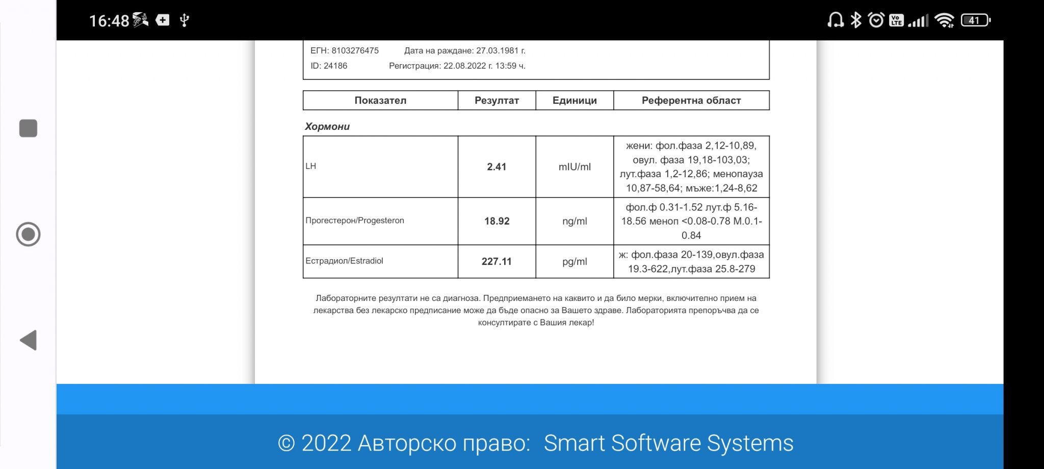 Здравейте, момичета! Тъй като ми се случи нещо поне за мен доста странно, бих искала да разбера дали някой се сблъсквал с подобен случай. Става въпрос за стойностите на хормоните, на естествен цикъл щяхме да правим инвитро, на 13-ти ден от цикъла с два фоликула 17 и 14 мм, стойностите на Е2-426, Лх 25, прогестерон 5. В същия ден бих цитротид и на следващия ден бях извикана на преглед. Фоликулите 20 и 15 мм. Хормоните Е2-186, лх-10 и прогестерон 1.6. Кенселирахме заради "лошите" резултати. Въпроса ми е на някой да се е случвало такова нещо, чак такава разлика в изследванията за има - няма 24 часа? Мислех да не е лабораторна грешка, но уви няма как да разбера.