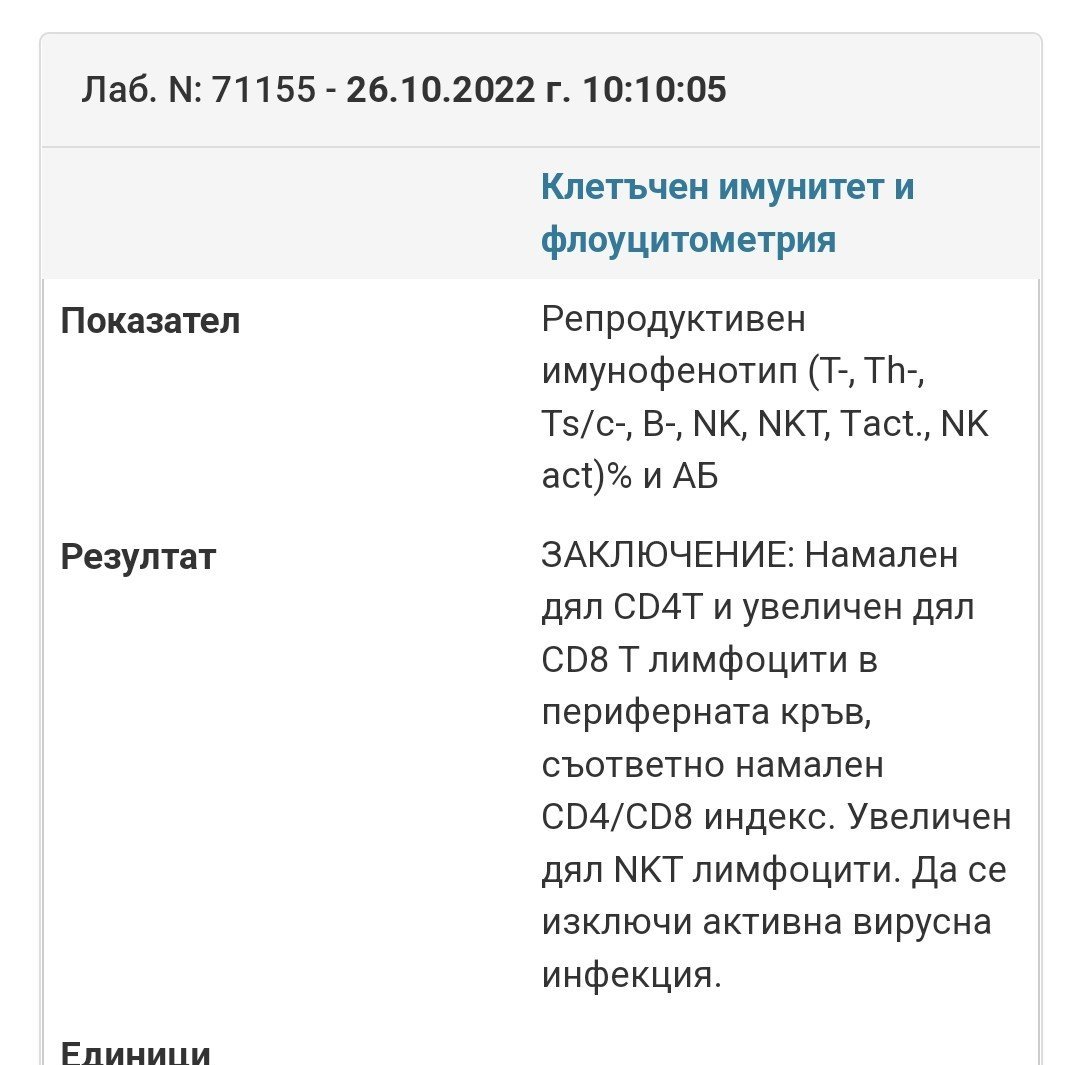 Изпратиха ме да изследвам клетъчен имунитет. Това са резултатите. Някой имал ли е подобни и каква терапия ви е изписвана.