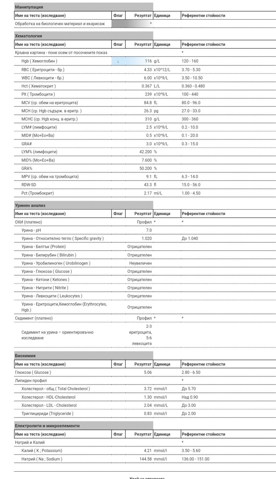 Не мога да смогна да ви прочета Stuck Out Tongue Winking Eye. Обявявам моят глюкомер за най- гадният уред. След като тази сутрин ми показа пак 5.7.  Вижте каква излезе в лабораторията. Изобщо не може да им се вярва на 100%. Изследванията са ми назначени от кардиолог, защото имах проблеми и се оказа ,че имам възпаление на перикарда. Сега ще пия лекарства известно време. Каза ,че имам и лека анемия. Предполагам ще се наложи прием на желязо