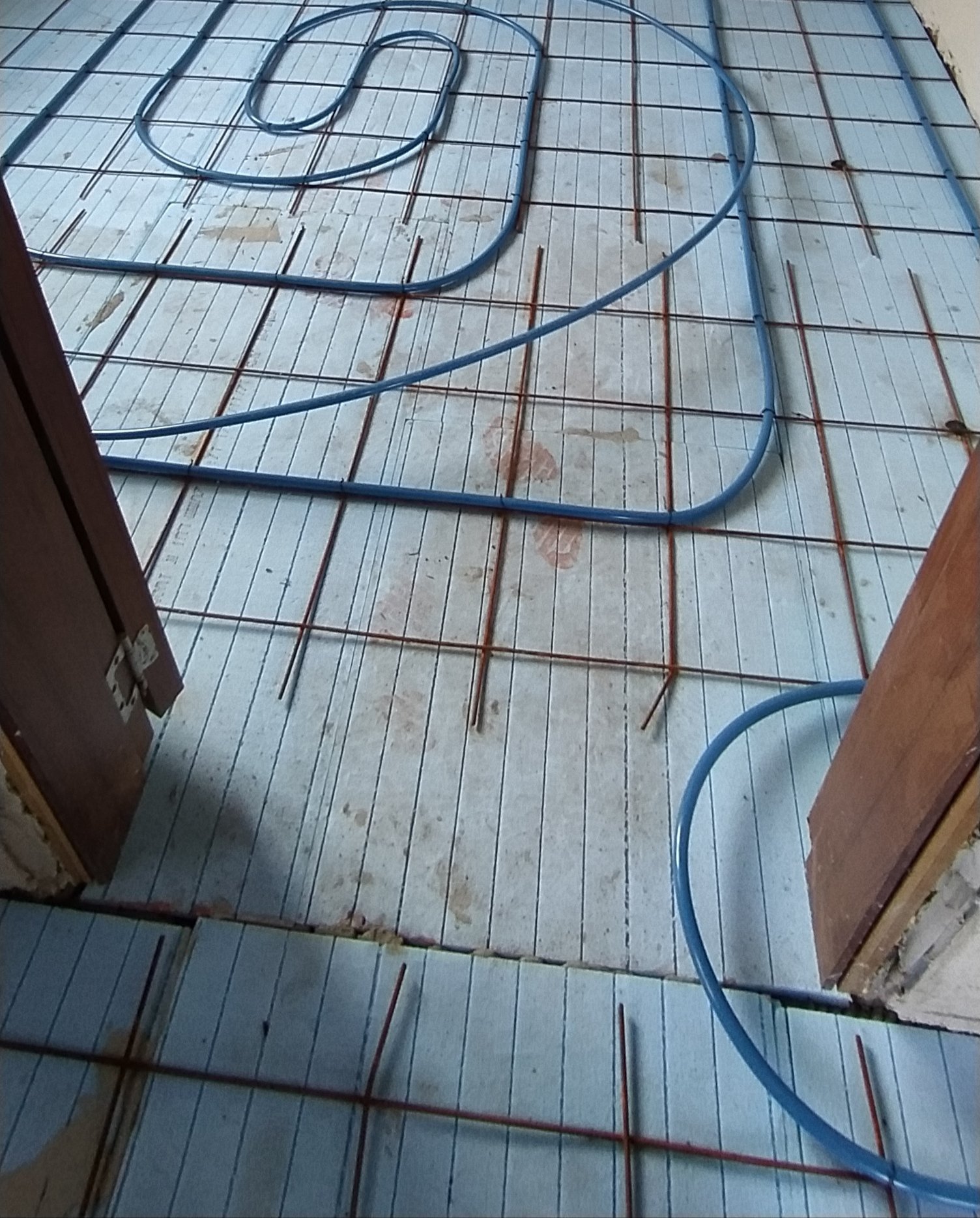 Мако, питах . В банята , тъй като вдигахме нивото с итонг, тръбите са в тухличките, в улейчета.Отгоре има замаска и плочки. На другите места, тъй като имаше мозайка, само направиха легло на тръбите , положиха ги и отгоре с лепило за плочки,само там ,където са тръбите. Отгоре директно плочки, без замаска.