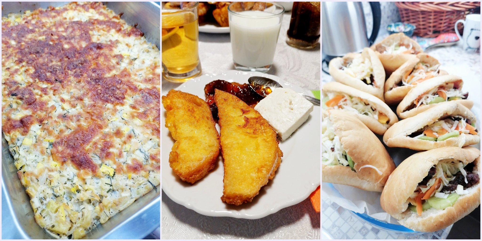 Мусака с тиквички, пържени филийки и джобчета за довечера