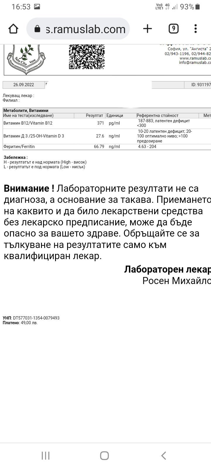Какви са препоръчителните нива на витамин В12 и какви изследвания се препоръчват за него?